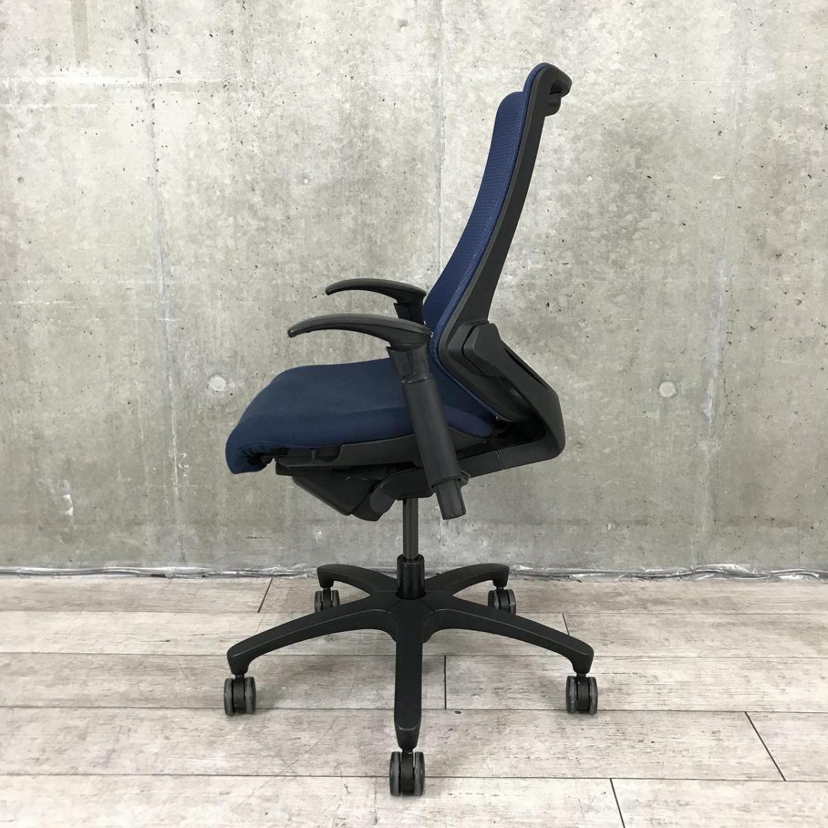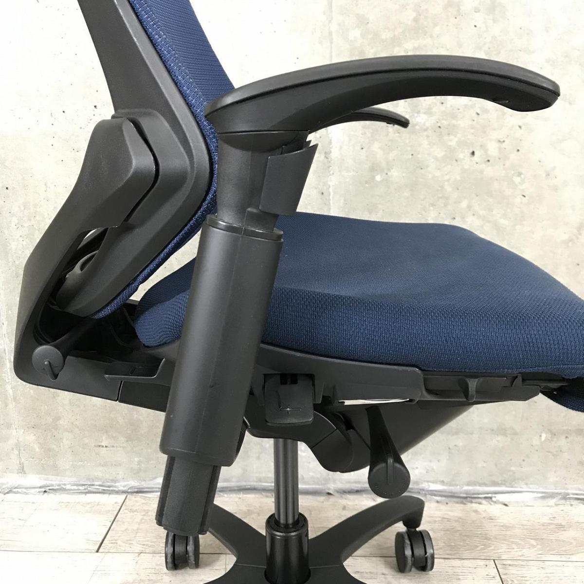 【1脚限定の為、クレジット決済優先!】【姿勢の変化にフレキシブルに対応!スタイリッシュで座り心地も抜群な高機能チェア!】■イトーキ(ITOKI)製 エフ(f)チェア 肘付き ハイバック 背面メッシュ ■可動肘 ■ネイビーブルー ×ブラックシェル