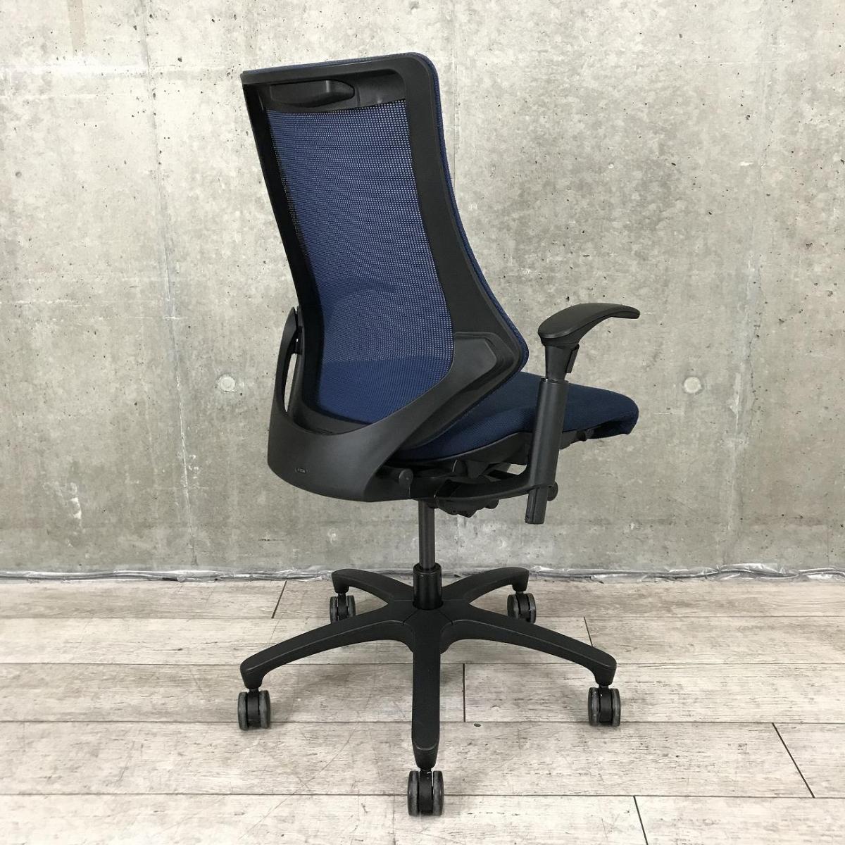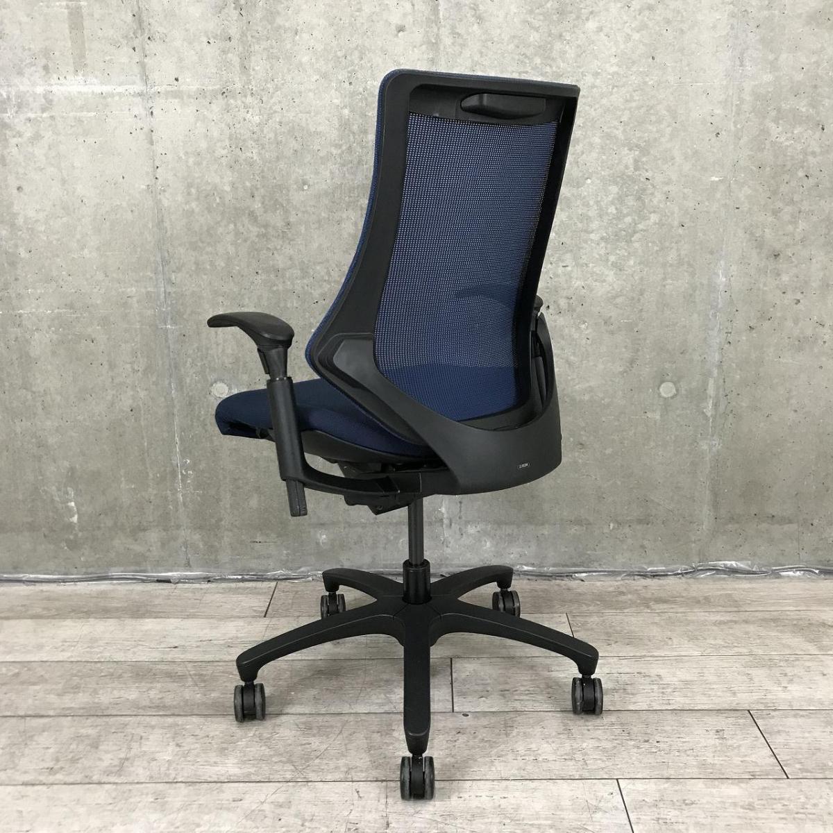 【姿勢の変化にフレキシブルに対応!スタイリッシュで座り心地も抜群な高機能チェア!】■イトーキ(ITOKI)製 エフ(f)チェア 肘付き ハイバック 背面メッシュ ■可動肘 ■ネイビーブルー ×ブラックシェル【2510】弊社使用欄【A01040263】