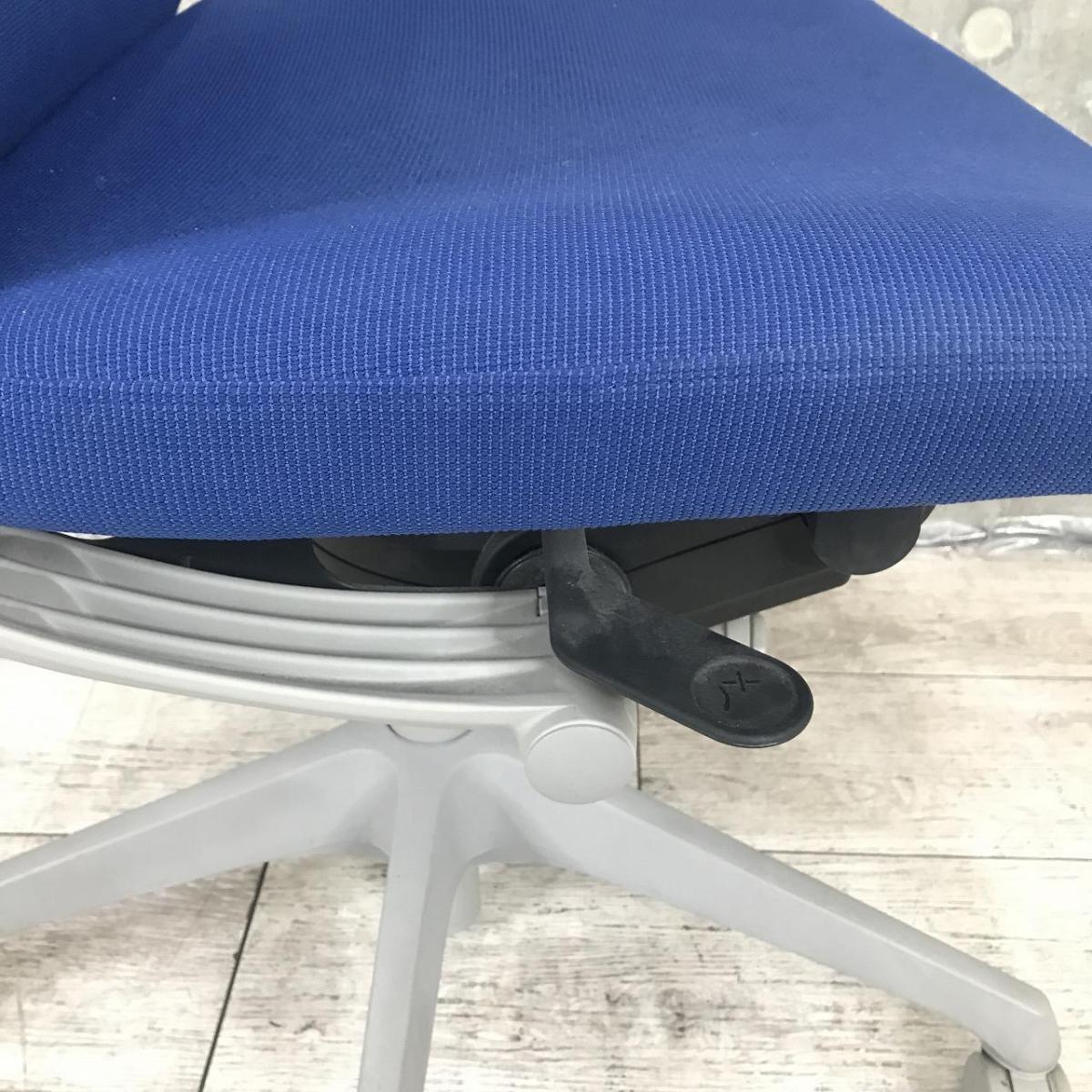 【T11】【T9】【座面スポンジ劣化】オカムラ製 ヴィスコンテシリーズ ミディアムブルー クッションタイプ 高いデザイン性と快適なクッション性が人気のOAチェア! 肘無しハイバックチェア!!