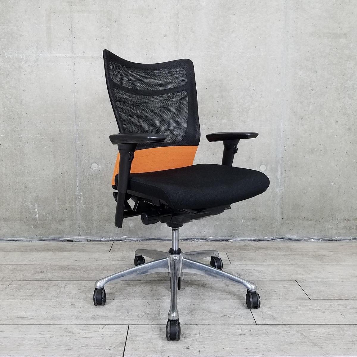 【関東倉庫在庫品】【快適な座り込みを実現できる!】■オカムラ製 フィーゴメッシュ 肘付ハイバックチェア ■オレンジ【弊社使用欄:A00988728】【ECBMC】【在庫入替セール品につき限定特価!】- 在庫数