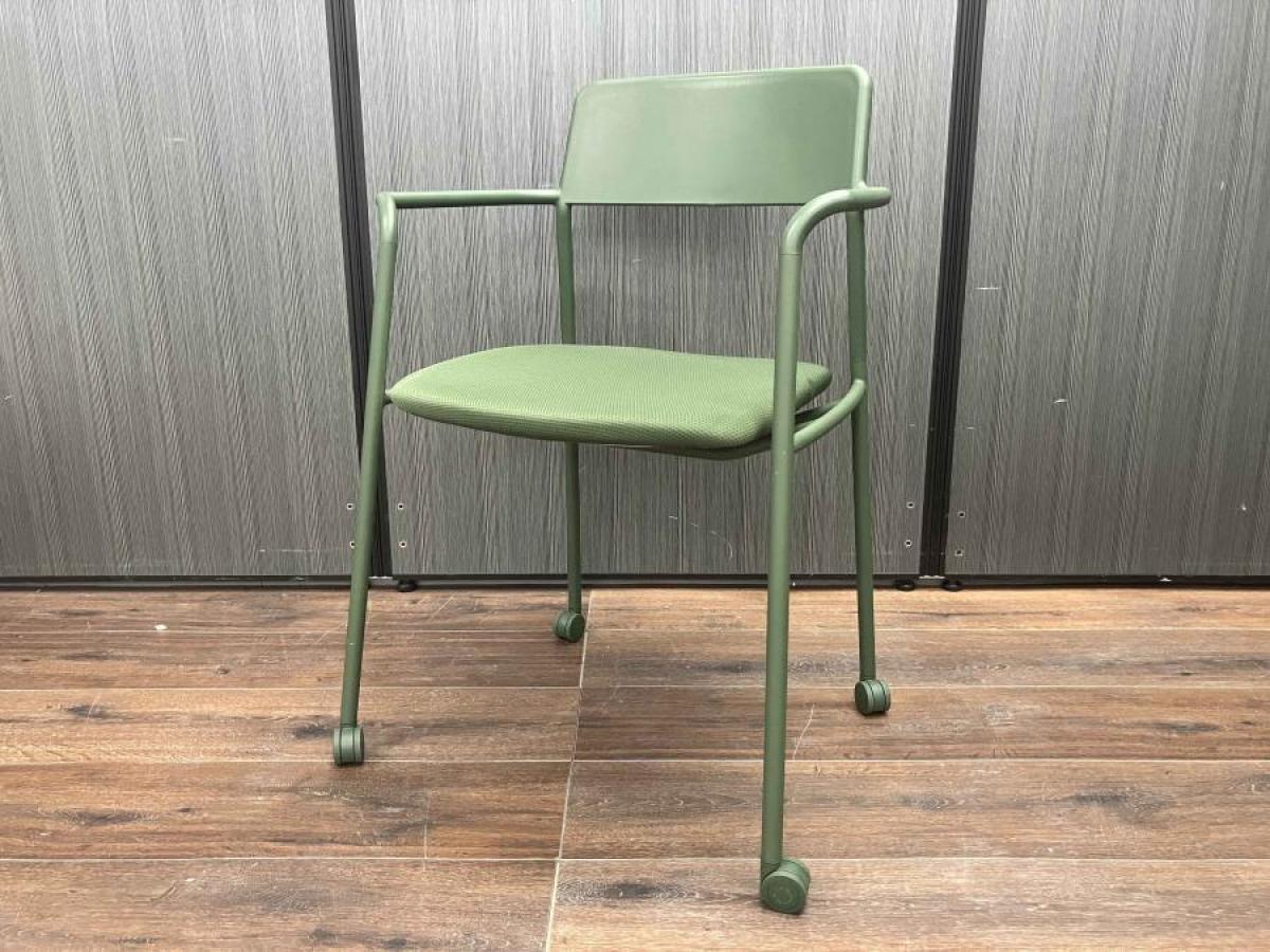 【在庫入れ替えSALE】【スタイリッシュデザインのミーティングチェア!】■コクヨ (KOKUYO) エニー (Any) ネスティングチェア 平行スタッキング 肘付き ■キャスター付き グリーン〈岐阜・愛知・三重・静岡・福井〉- 在庫数