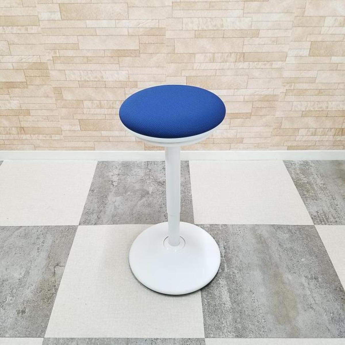【「座る」と「立つ」のいいとこ取り!】■オカムラ(okamura)製 ピルエットシリーズ(pirouetto) カウンターチェア スツール ■ブルー/支柱脚:ホワイト【高さ調節可能なパーチングスツール!】