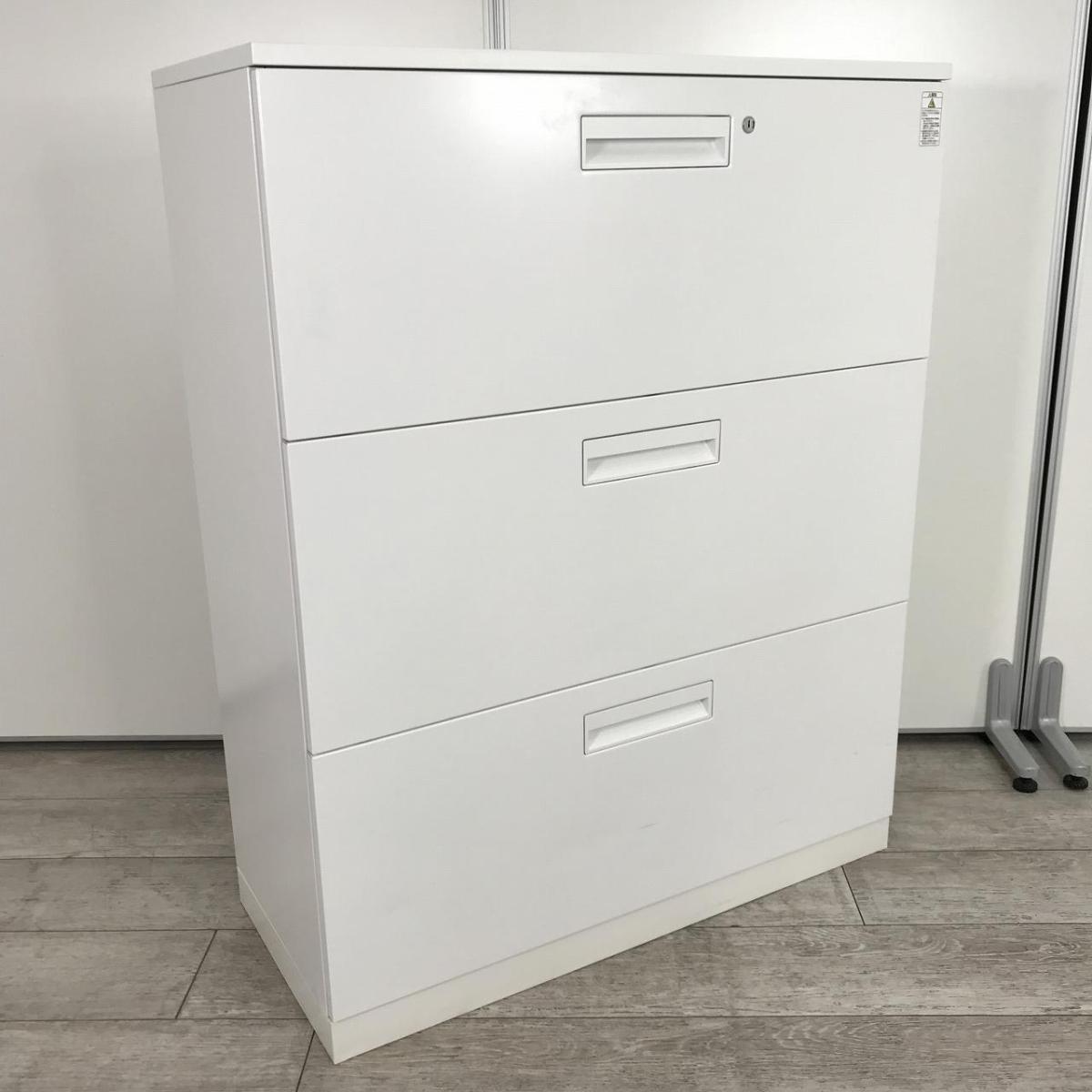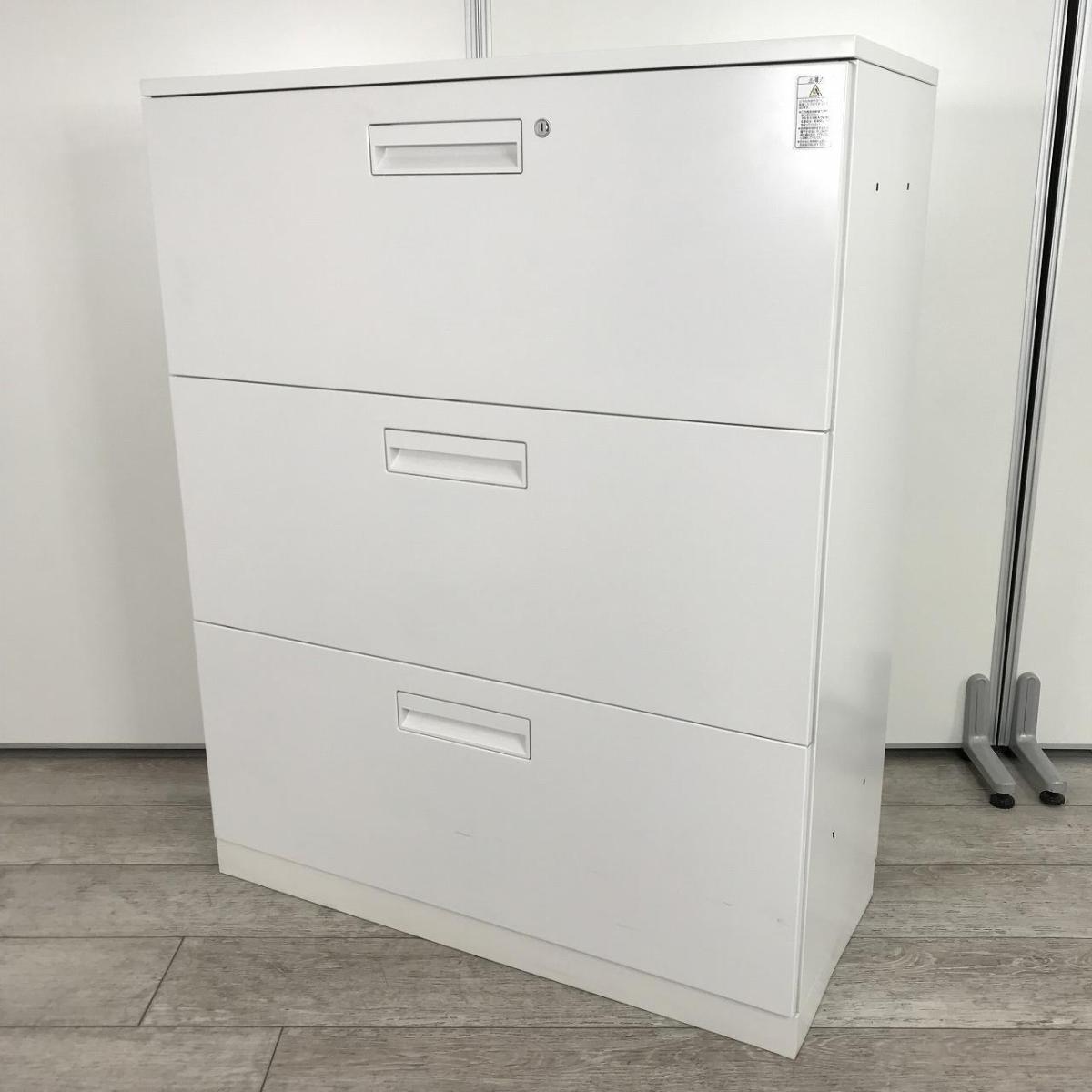 【2020年製】【収納力抜群の3段ラテラル書庫!A4書類が大量に収納可能!】■コクヨ(KOKUYO)製 エディア(EDIA)シリーズ 3段ラテラル ローキャビネット H1130㎜ ■天板・ベース付き ■ホワイト ■シリンダー錠【2511】弊社使用欄【A01044970】
