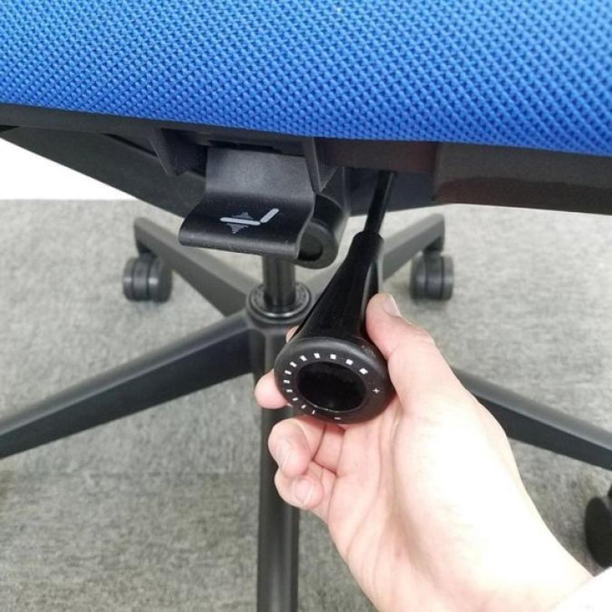 また、個人的にオススメなのは『フルアジャスタブル肘』というアーム部分が斜め前に伸びていくタイプの肘置きを搭載したモデルです。高さを上げれば上げるほどパッドが前方に迫り出していくので、デスクワークの際にちょうど肘を置きたい場所に肘置きがきます。これがとても快適なので、ぜひ一度お試しいただきたいです!*エルフィチェアの肘パーツはフルアジャスタブル肘の他に、固定肘、アジャスタブル肘などがあります。