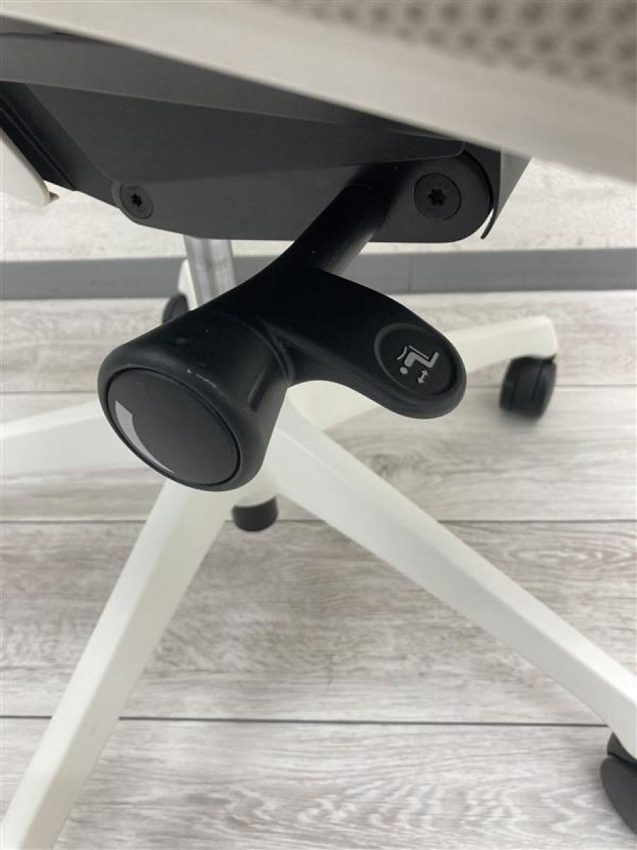 - 座面右下のダイヤル操作で、リクライニングの強弱調整が行えます。これまでのダイヤル式よりも、少ない回転数で、最弱?最強の調整が可能です。