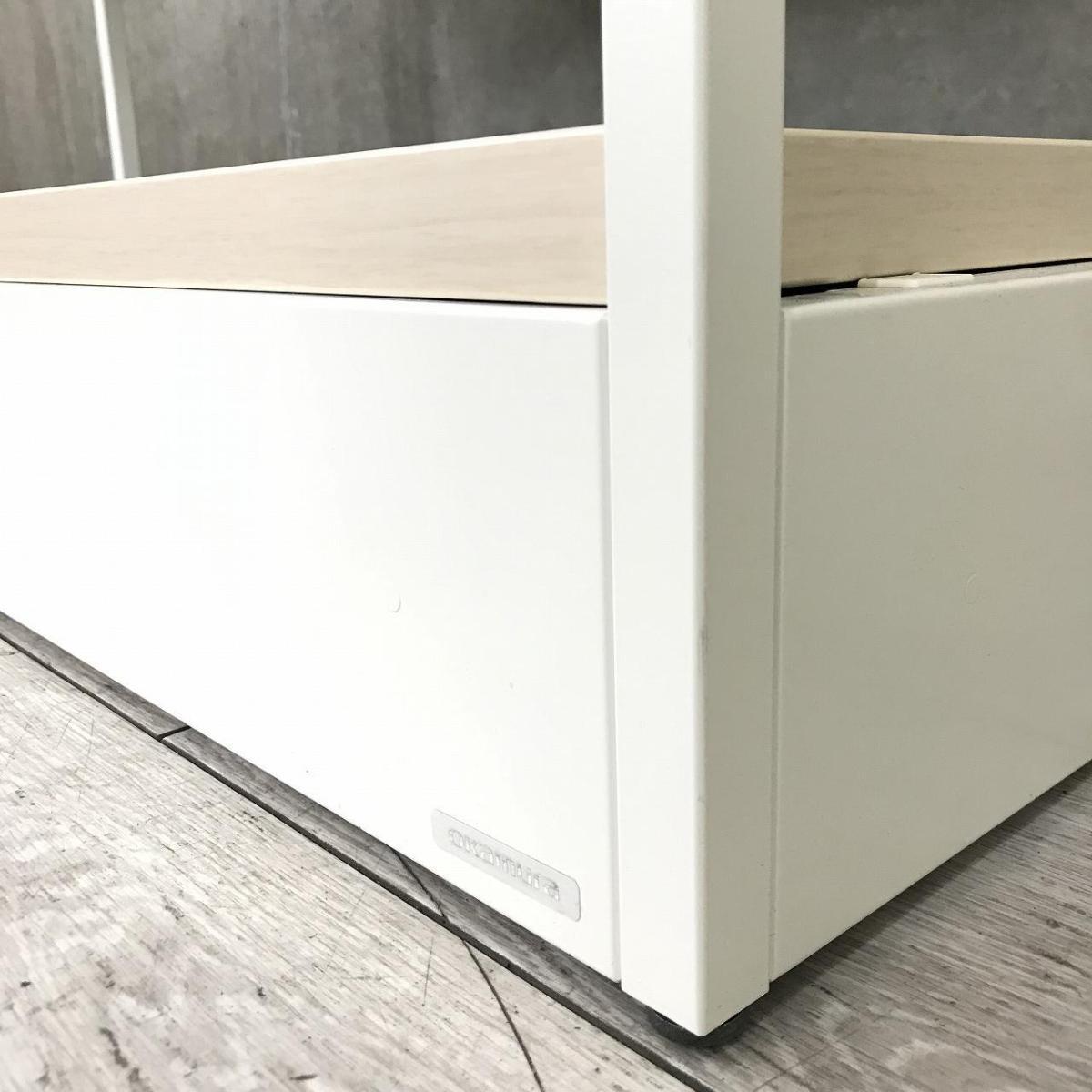 【物を置くことはもちろん、空間をさりげなく仕切るパーテーションにもなるシェルフです!】■オカムラ(okamura)製 ライブス(Lives)シェルフ スチールラック W1200×D450×H1410㎜ ■フレーム:ホワイト 棚:ナチュラル木目調- 品川・三田店