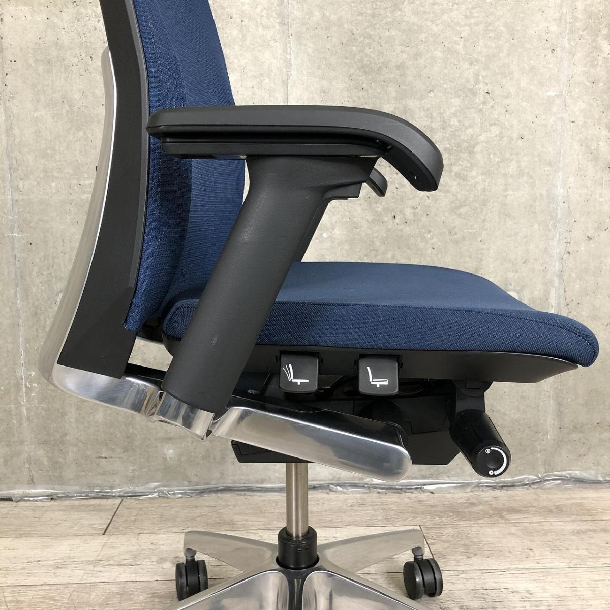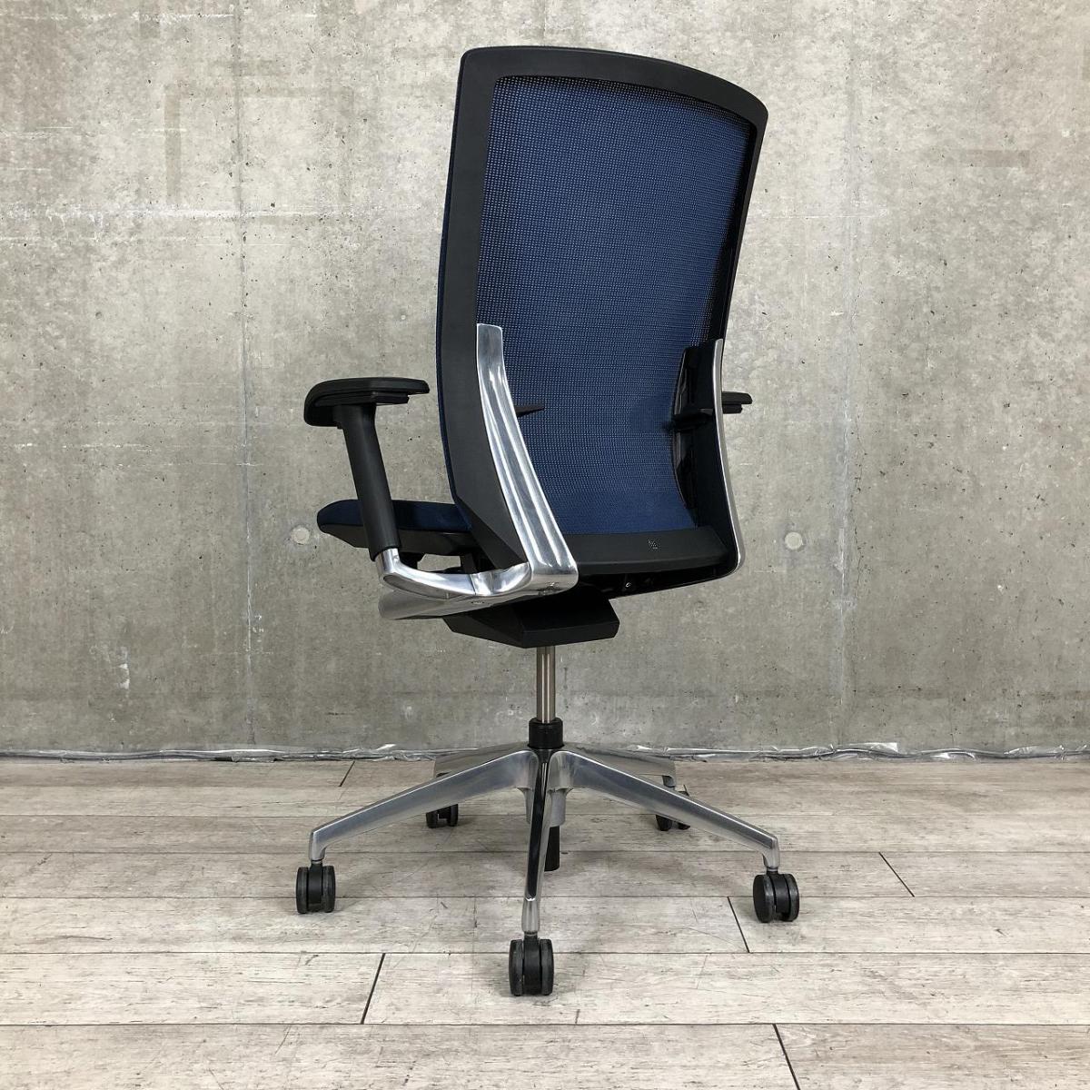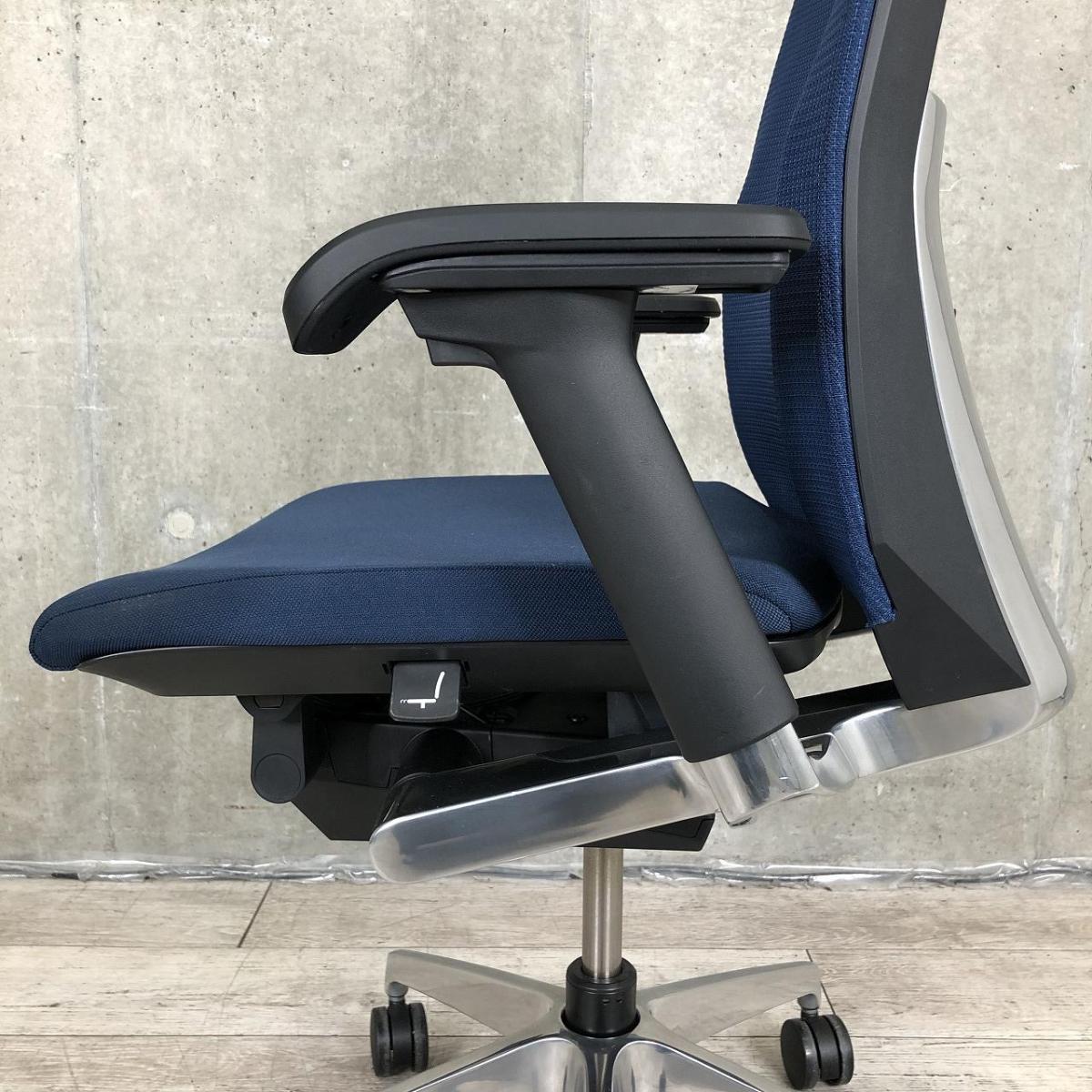 【シャープかつシンプルなデザイン!大きな背面が体にフィット!通気性がよく長時間でも快適な高級チェア!】■イトーキ(ITOKI)製 ヴェント(Vent)チェア 肘付き ハイバック 背面メッシュ ■可動肘・ランバー付き ■ネイビーブルー×ブラックシェル