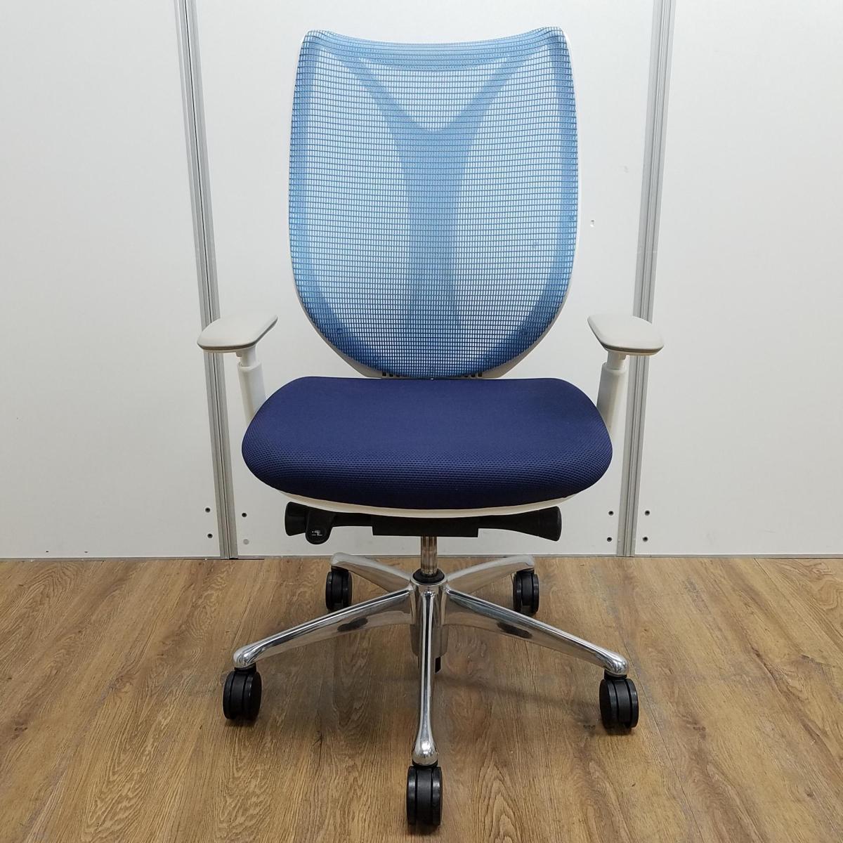 【前傾チルト付!流れるような美しいフォルムの最高級メッシュチェア!】/オススメ(おすすめ) /人気商品【弊社使用欄:A01014866】■okamura製 Sabrina ハイバック 肘付き ■可動肘 ■背面メッシュ:アクアブルー 座面:ブルー ホワイトフレーム/オカムラ/サブリナ- 池袋店