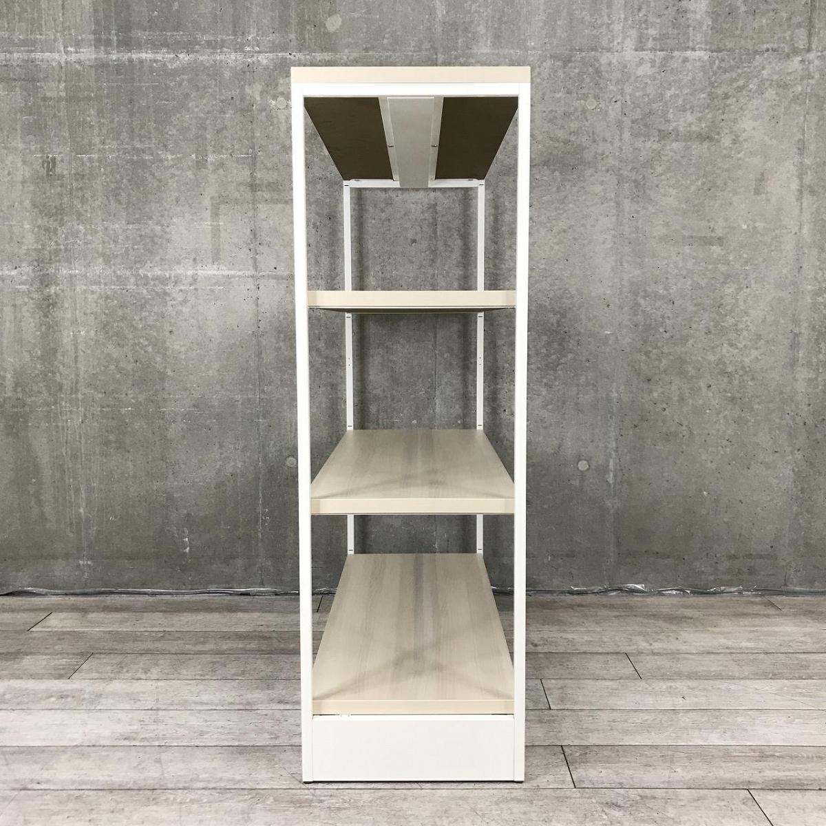 【物を置くことはもちろん、空間をさりげなく仕切るパーテーションにもなるシェルフです!】■オカムラ(okamura)製 ライブス(Lives)シェルフ スチールラック W1200×D450×H1410㎜ ■フレーム:ホワイト 棚:ナチュラル木目調- 名古屋本店
