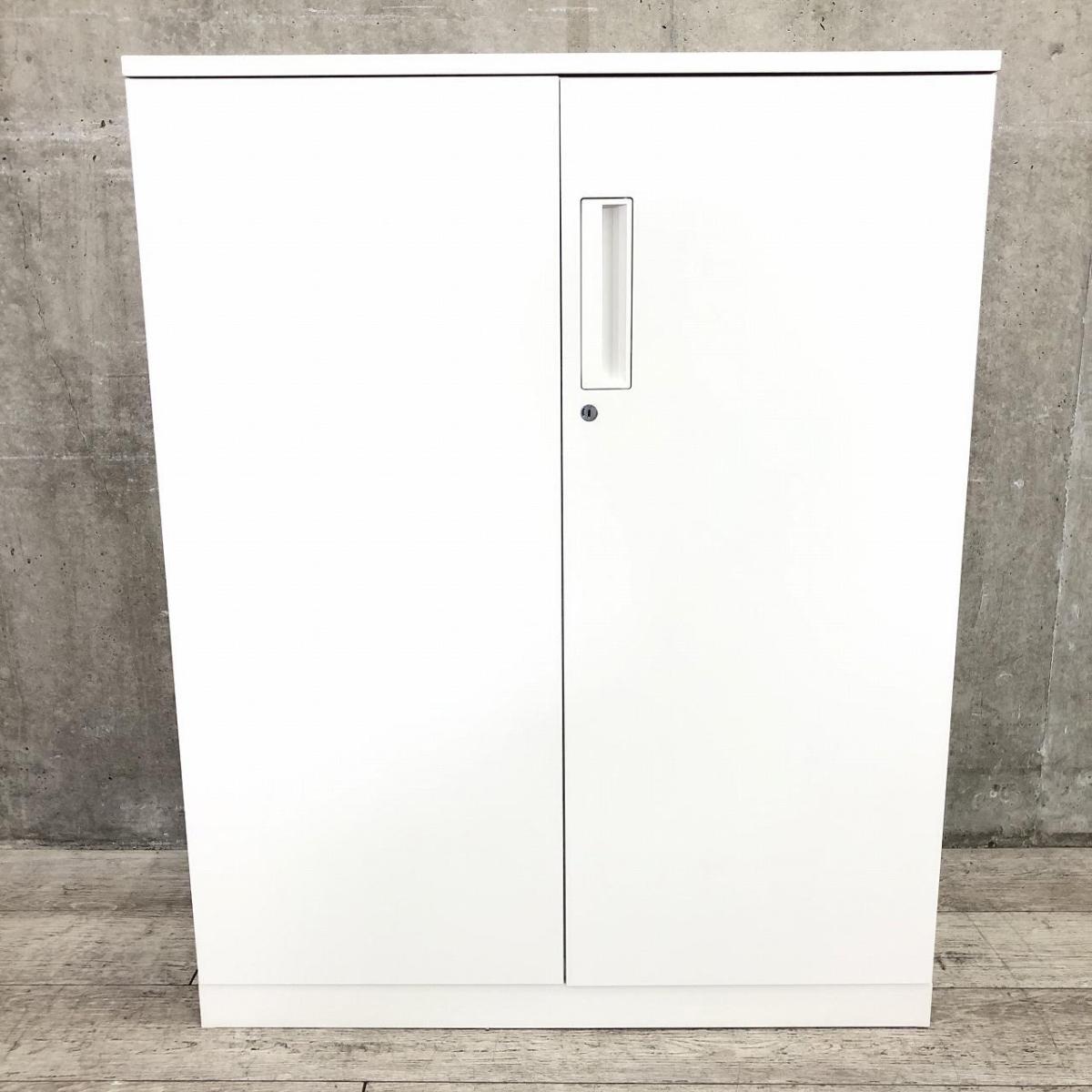 【収納物がひとめで分かる両開き戸タイプ!】■コクヨ(KOKUYO)製 エディア(EDIA)シリーズ 両開き書庫 ローキャビネット H1130㎜ ■天板・ベース付 ■ホワイト ■シリンダー錠