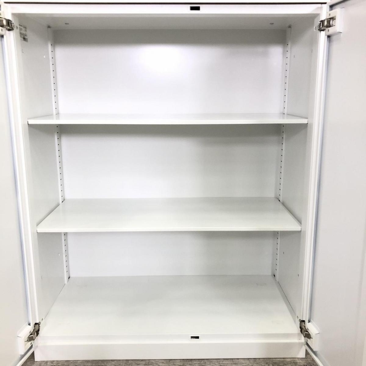 【収納物がひとめで分かる両開き戸タイプ!】■コクヨ(KOKUYO)製 エディア(EDIA)シリーズ 両開き書庫 ローキャビネット H1130㎜ ■天板・ベース付 ■ホワイト ■シリンダー錠【IB】