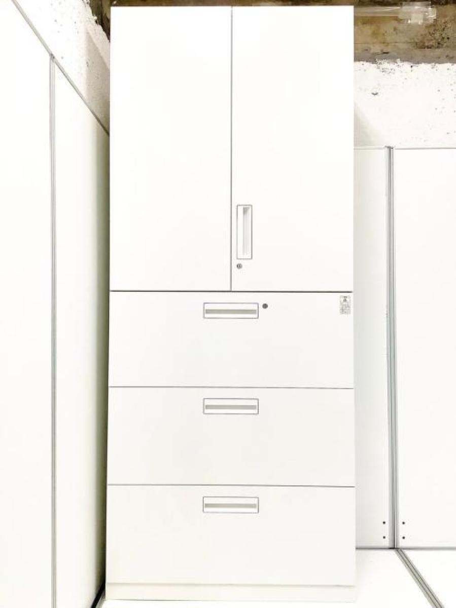 【収納量抜群の書庫セット!観音開き+引き出しタイプの人気の組み合わせ!】■コクヨ(KOKUYO)製 エディアシリーズ(EDIA) 両開き+3段ラテラル 書庫セット ハイキャビネット ■シリンダー錠 ■ホワイト