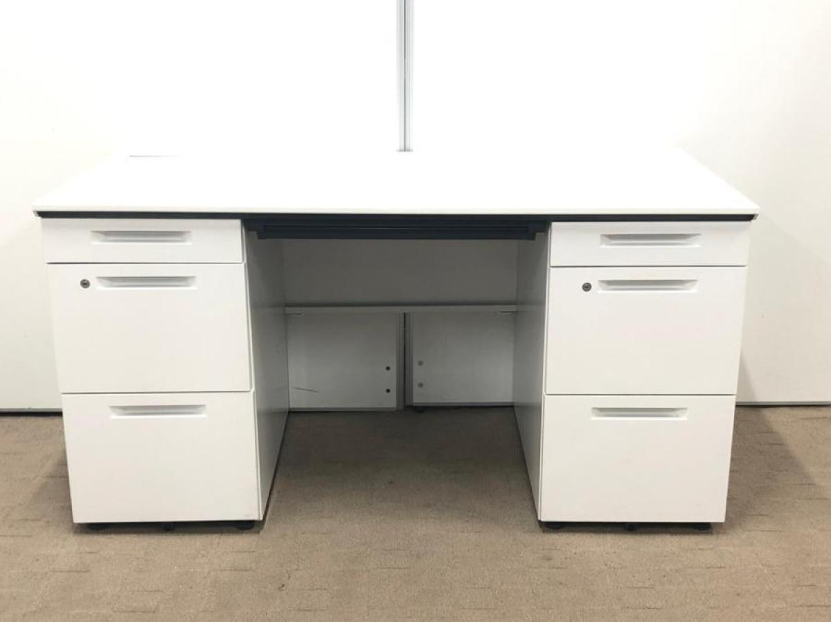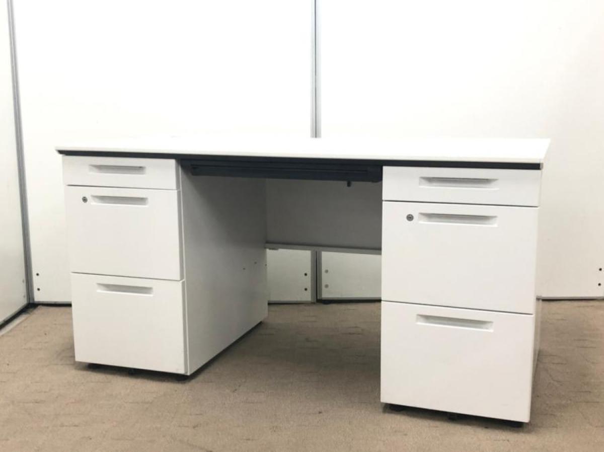 【在庫セール品・1台限定】【T11】■コクヨ(KOKUYO)製 アイエス(iS)シリーズ 両袖デスク W1400mm ■シリンダー錠 ■ホワイト【幅広いワークスペースで上長席にもオススメ! 収納スペース充実! 机上をスッキリ整理!】