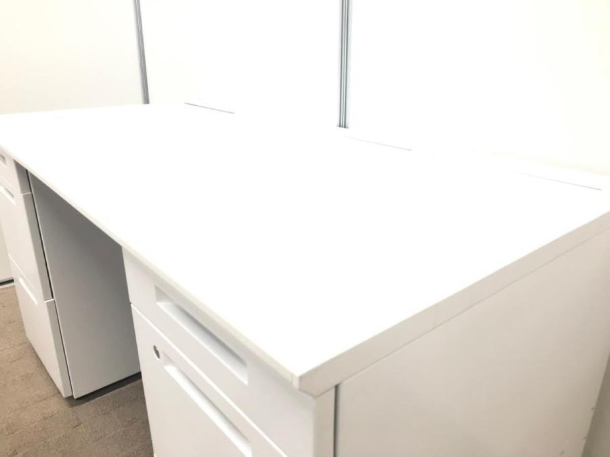 【T11】【商品入替のため、残り4台限り】コクヨ製 アイエス(IS) ホワイト 両袖 デスク W1400xD700xH720サイズ シリンダー 収納スペース充実! 机上をスッキリ整理! 幅広いワークスペースで上長席にもオススメ! W1400両袖机!!