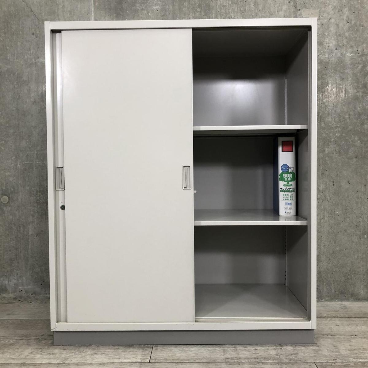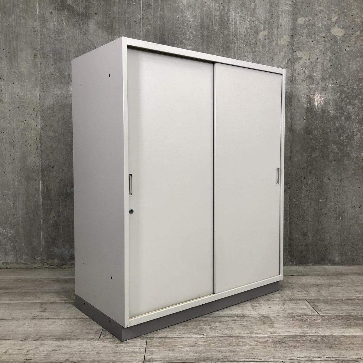 【定価約11万円】【スライド式なので開閉スペースに困りません!人気の3枚引き戸書庫!】■イトーキ (ITOKI)製 シンラインシリーズ 引き違い書庫 ローキャビネット 3枚引き戸 H1040㎜ ■グレー ■シリンダー錠 ※ベースなし