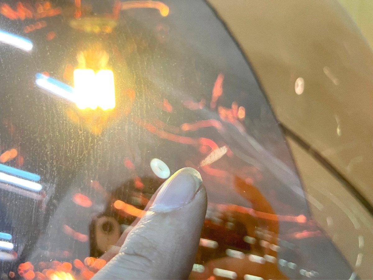 - あり黄ばみ・変色が広い範囲にうっすらある、または濃い黄ばみ・変色が一部ある。(例、正面、背部、サイド部分にある。)