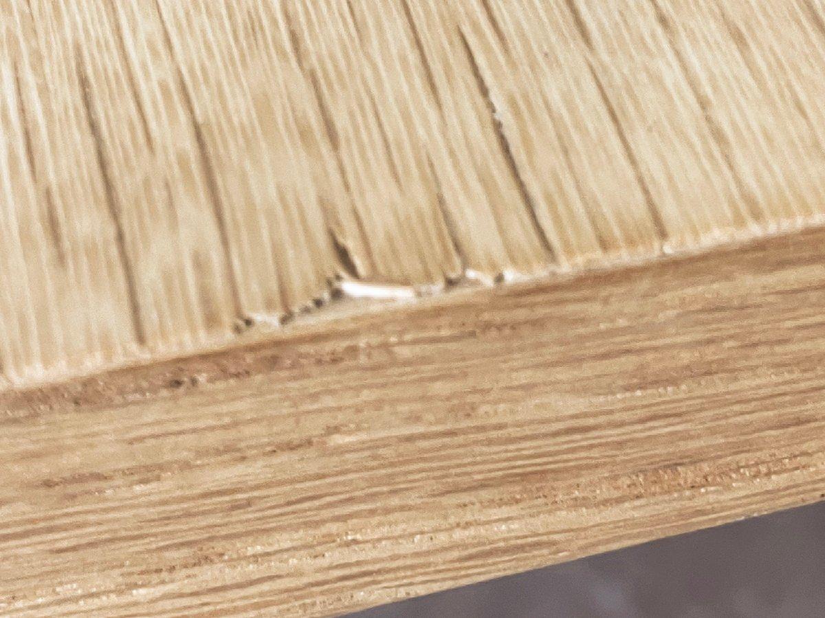 - あり黄ばみ・変色が広い範囲にうっすらある、または濃い黄ばみ・変色が一部ある。(例、天板、幕板、棚板、サイド部分、脚部等にある。)