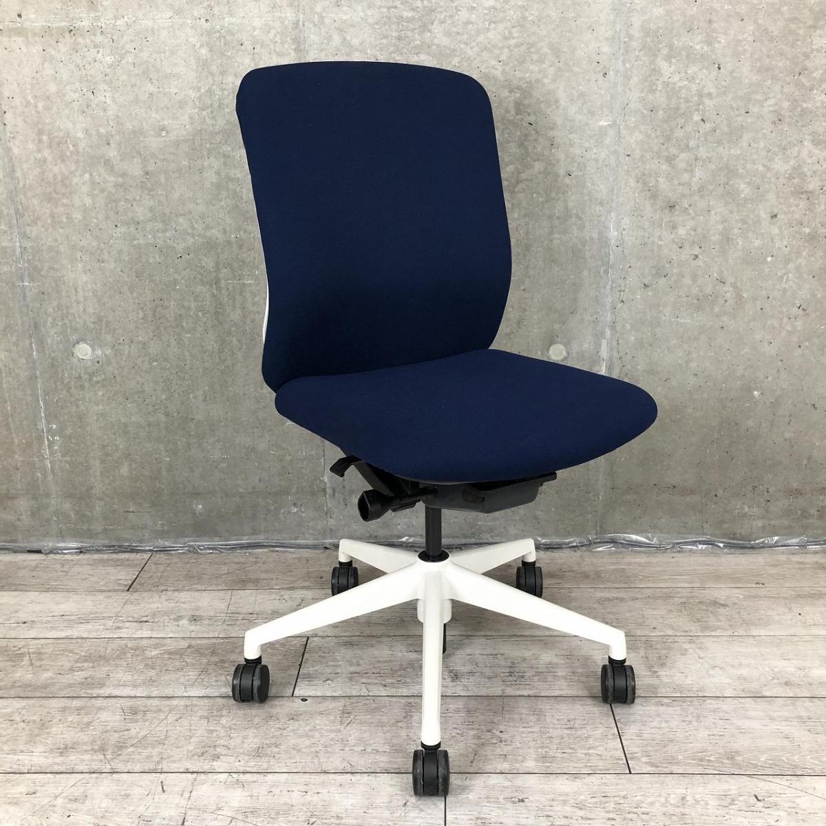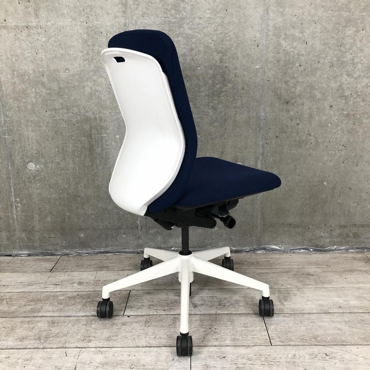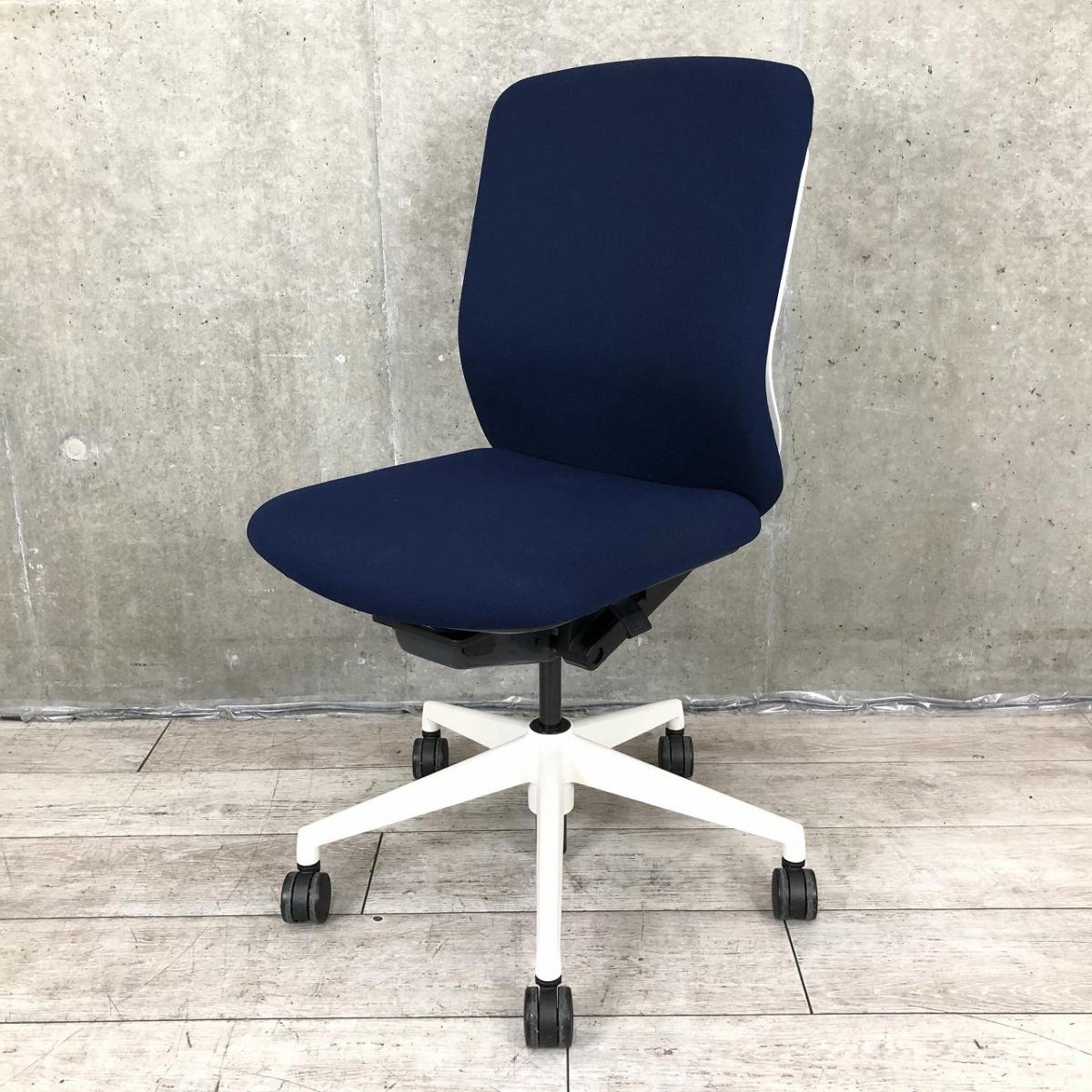 【リアルシンクロリクライニング搭載で快適な座り心地!】■ウチダ(UHIDA/内田洋行)製 クレネ(KRENE)チェア 肘無し ハイバック ■ダークブルー×ブラックシェル