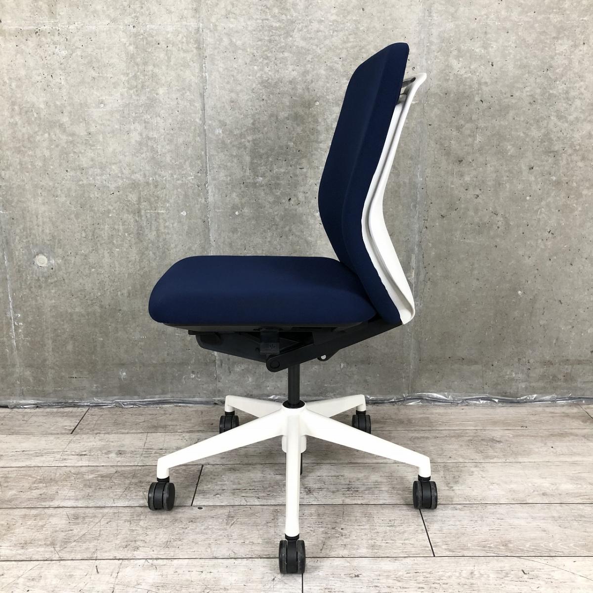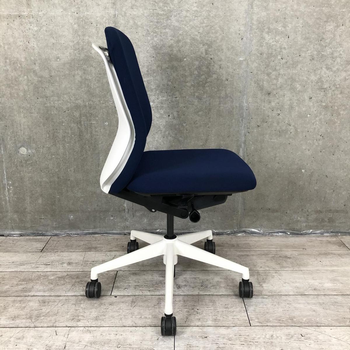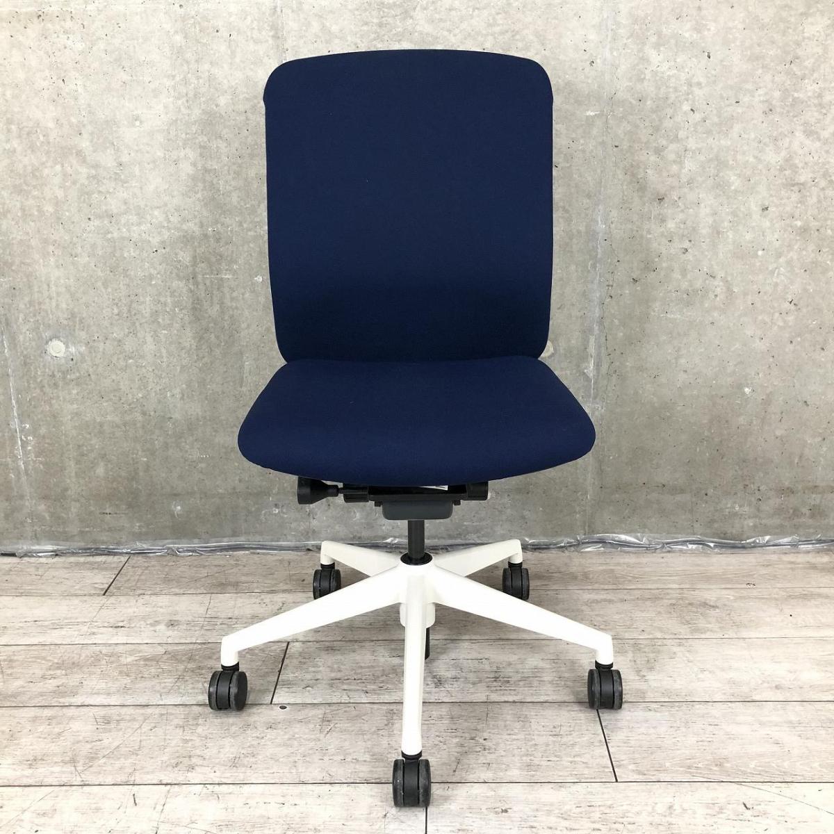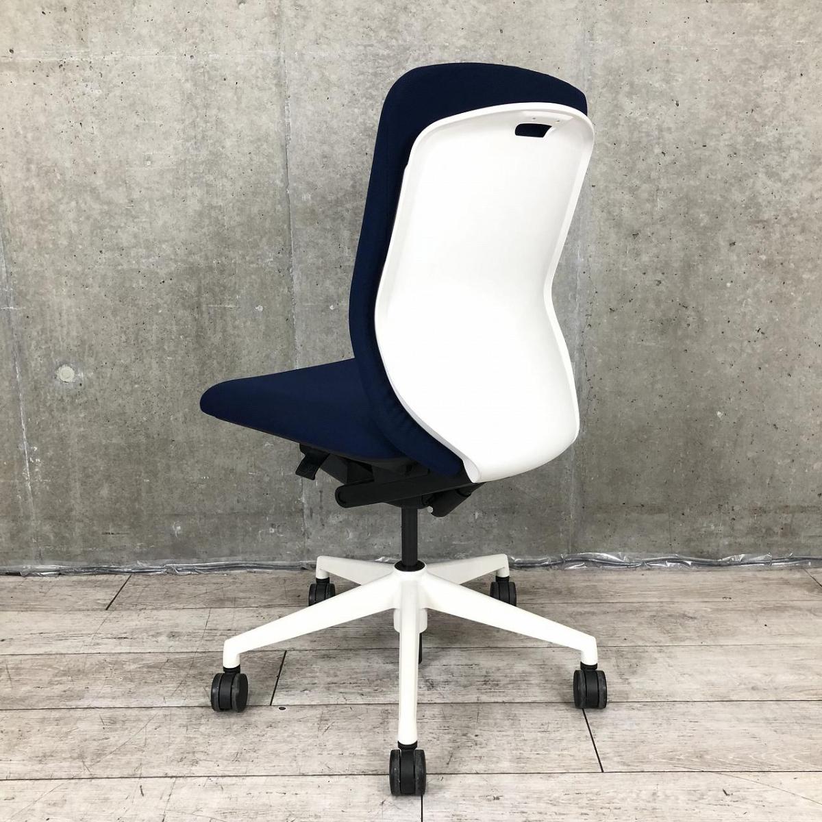 【リアルシンクロリクライニング搭載で快適な座り心地!】■ウチダ(UHIDA/内田洋行)製 クレネ(KRENE)チェア 肘無し ハイバック ■ダークブルー×ブラックシェル