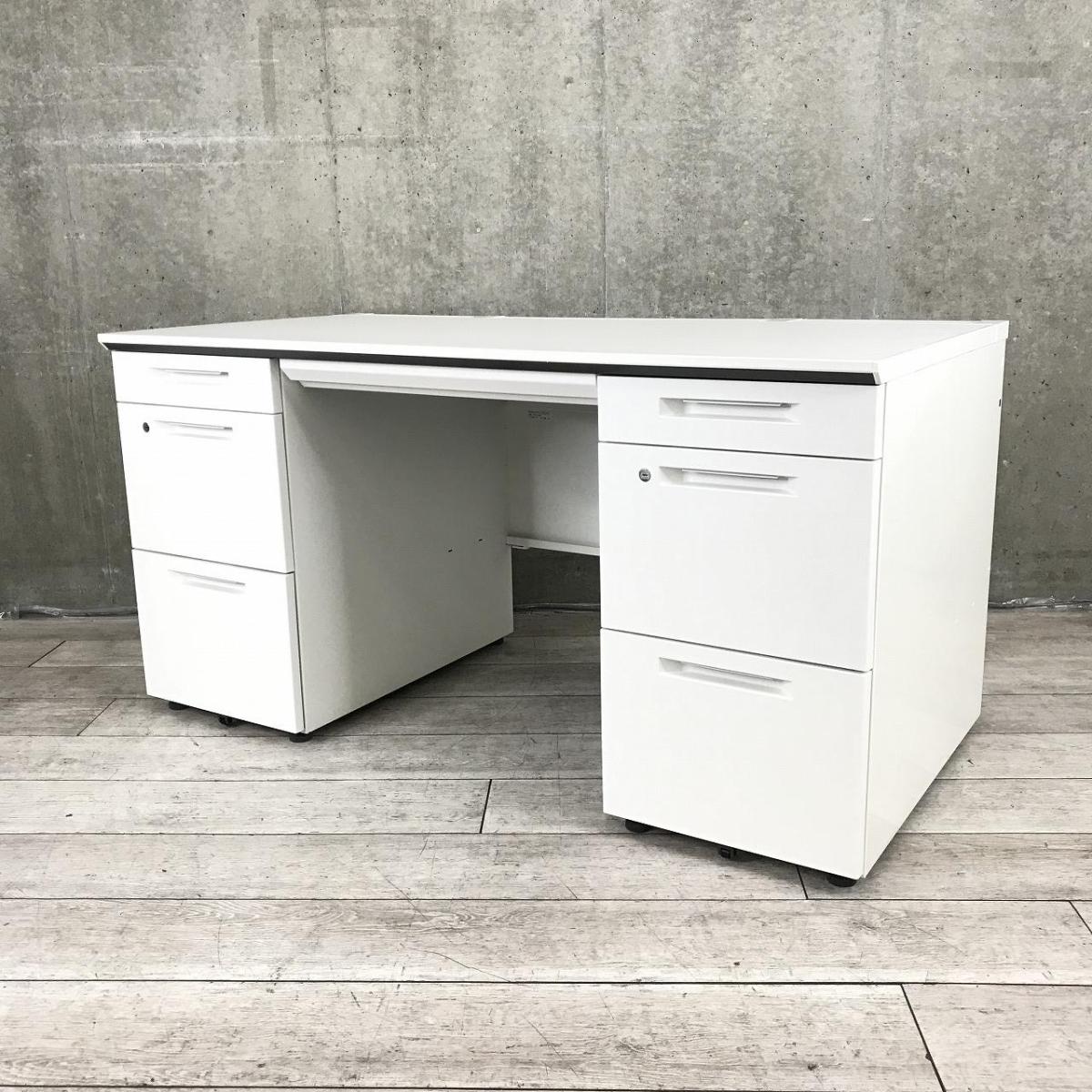 【在庫入替セール】コクヨ iSシリーズ 両袖机 W1400の定番サイズ ホワイト 鍵付き シリンダー錠 両側の引き出しで大容量の収納が可能 【愛知・名古屋・豊田・静岡・浜松】