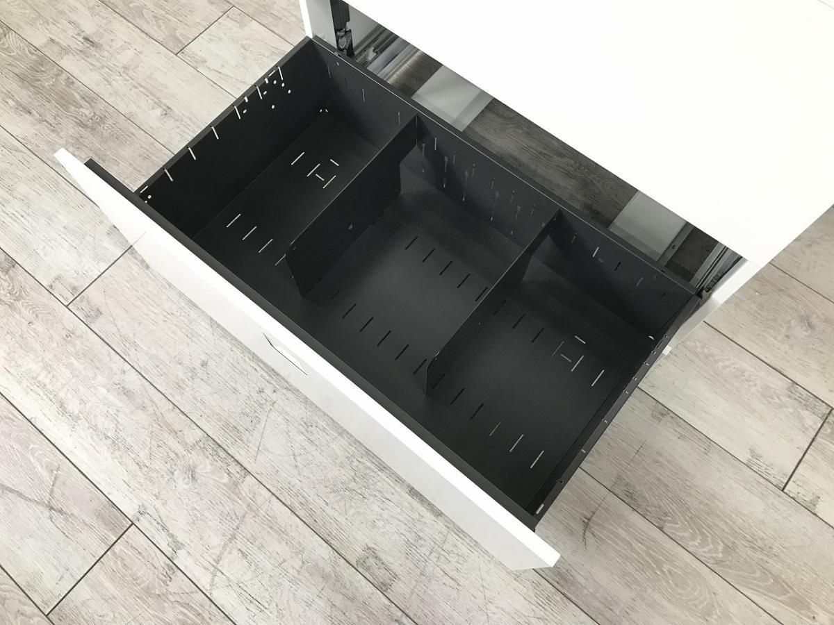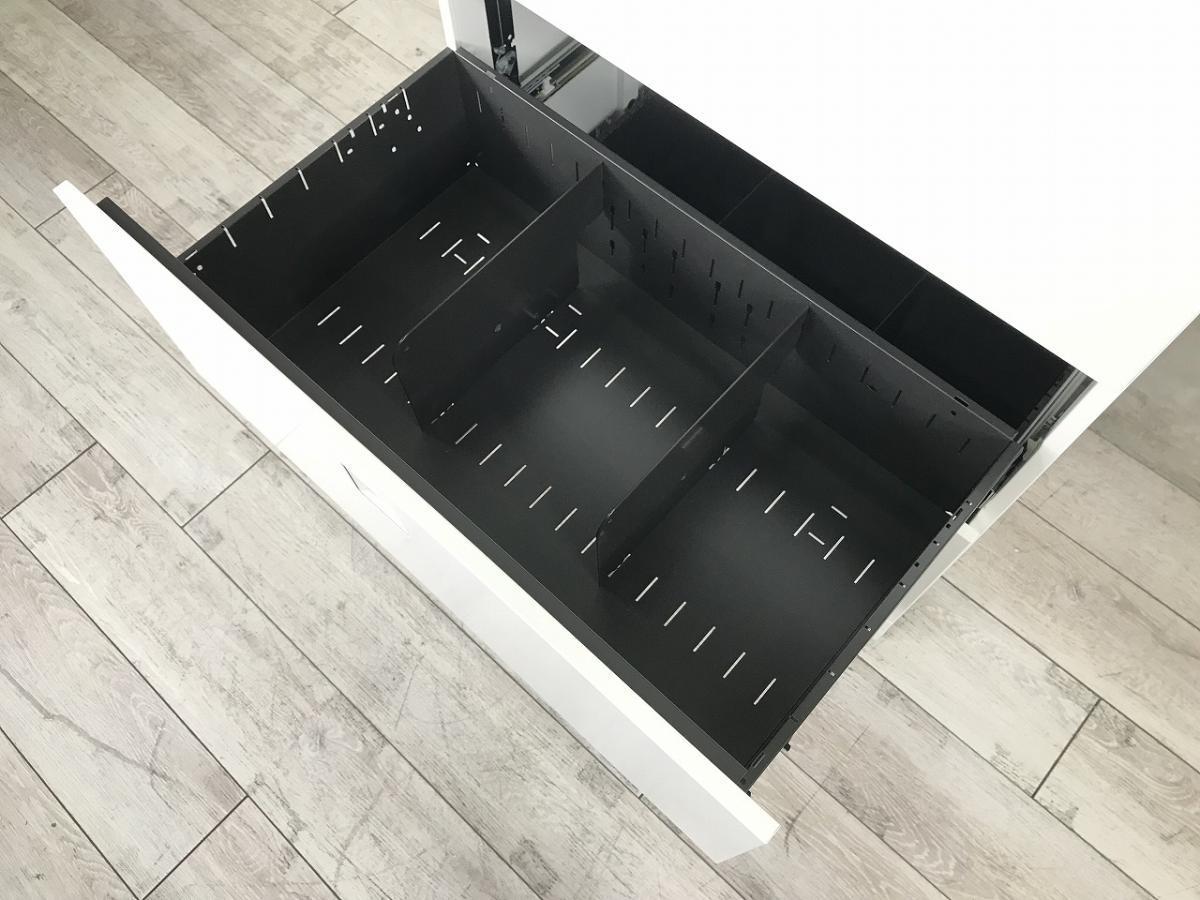 【使いやすさで選ぶならコレ!大容量の三段キャビネット】■オカムラ(Okamura)製 レクトラインシリーズ(Rectline) 3段ラテラル書庫 ローキャビネット ■天板付き ■シリンダー錠 ■ホワイト