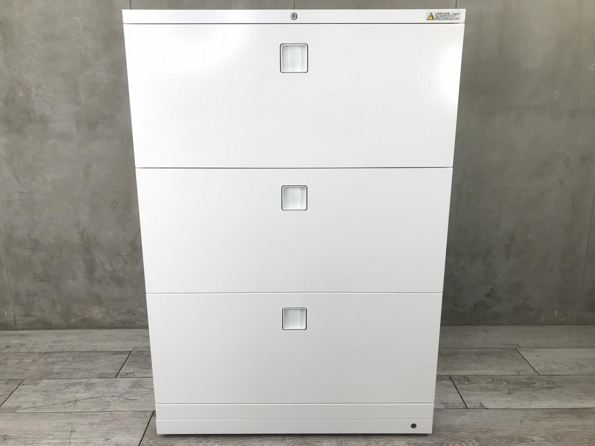 【ファイル収納にオススメ!高品質で使いやすい人気シリーズの3段ラテラル書庫!】■オカムラ(okamura)製 レクトラインシリーズ 3段ラテラル書庫 ローキャビネット H1100㎜ ■ホワイト ■シリンダー鍵 ■天板付き(天板:ホワイト) ※日焼け有