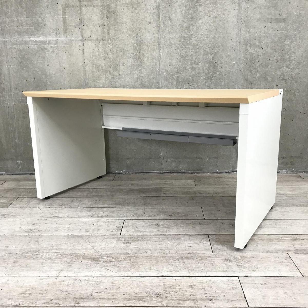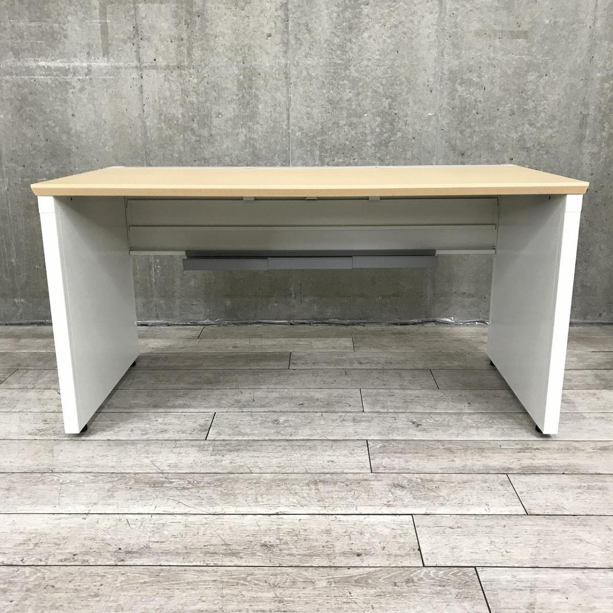 【ゆとりのあるワークスペースで作業効率アップ!】■プラス(PLUS)製 ステージオフリーシリーズ パーソナルテーブル W1400×D700×H720mm ■天板:木目ナチュラル/脚:ホワイト 【スタイリッシュなイメージの木目デザイン!ホワイトパネル脚】【弊社使用欄:A01019921】- 日本橋店