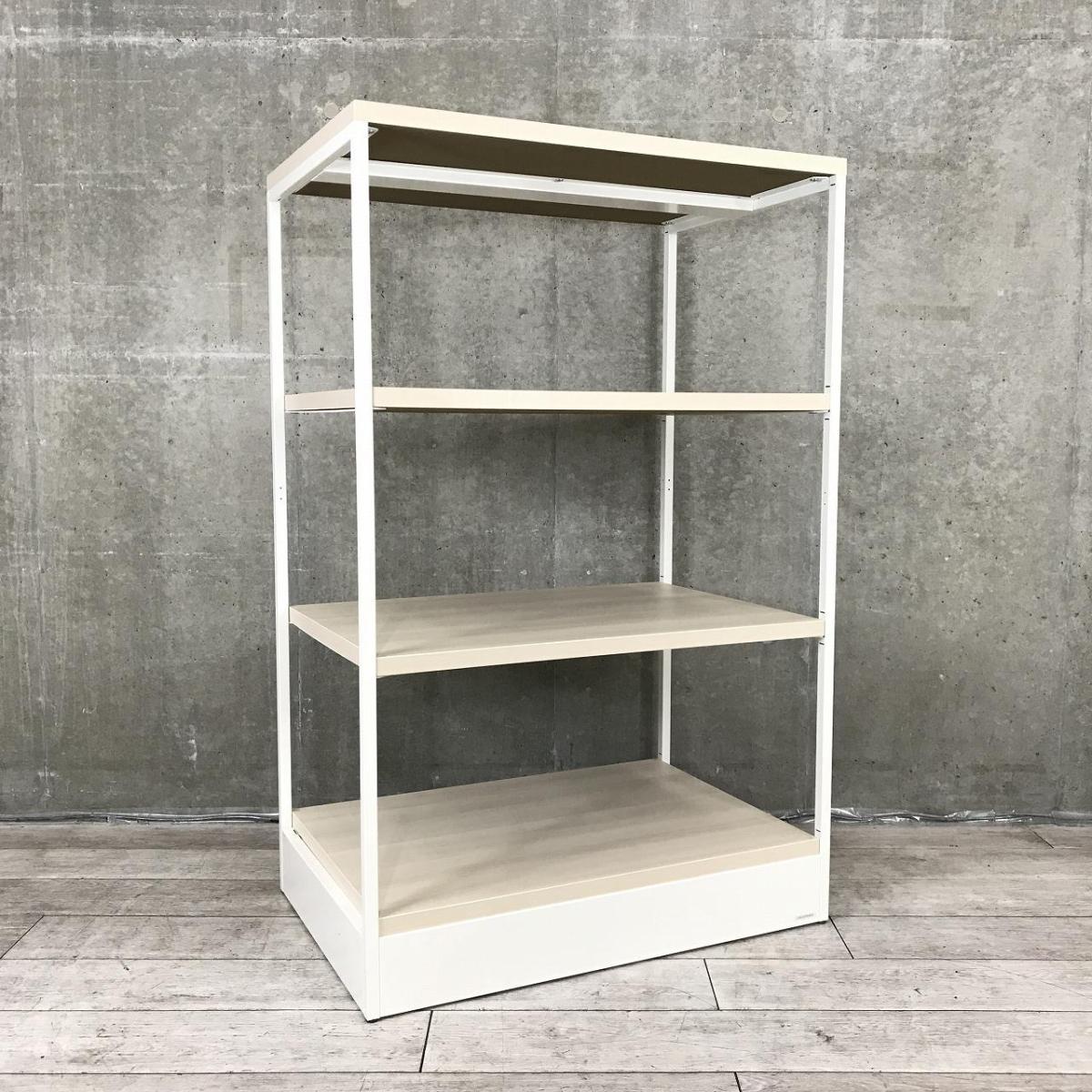 【オシャンティ!シンプルなフレームユニット!】■オカムラ製 ライブスシェルフ W900×D600×H1410㎜ ■フレーム:ホワイト 棚:ナチュラル木目調【Lives Shelf】【ABW】- 川崎店