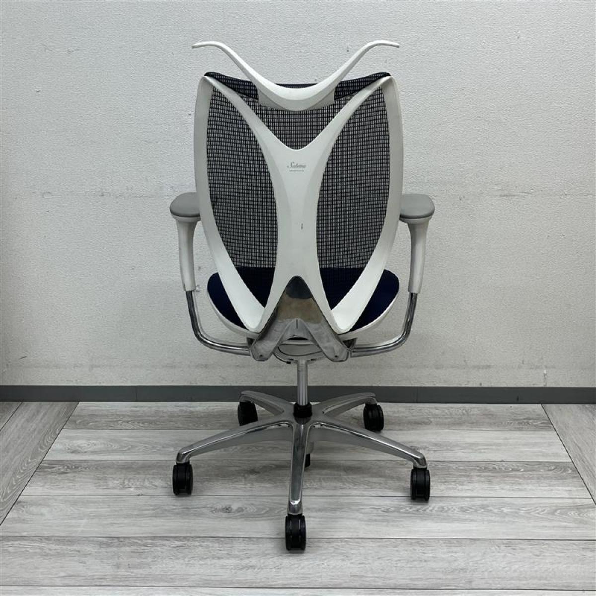 【前傾チルト付!流れるような美しいフォルムの最高級メッシュチェア!】■オカムラ(okamura)製 Sabrina(サブリナ) ハイバック 肘付き ■可動肘 ■背面メッシュ:アクアブルー 座面:ブルー ホワイトフレーム