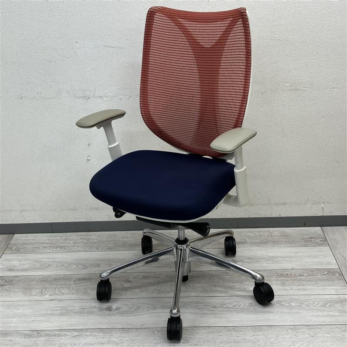 【来店限定キャンペーン】【定価約17万円】【クッション性抜群!長時間のデスクワークにおすすめ!】■オカムラ/サブリナ ■背もたれレッド/座面ブルー/フレームホワイトの珍しいトリコロールカラー!■可動肘 背もたれメッシュ■前傾チルト機能付き