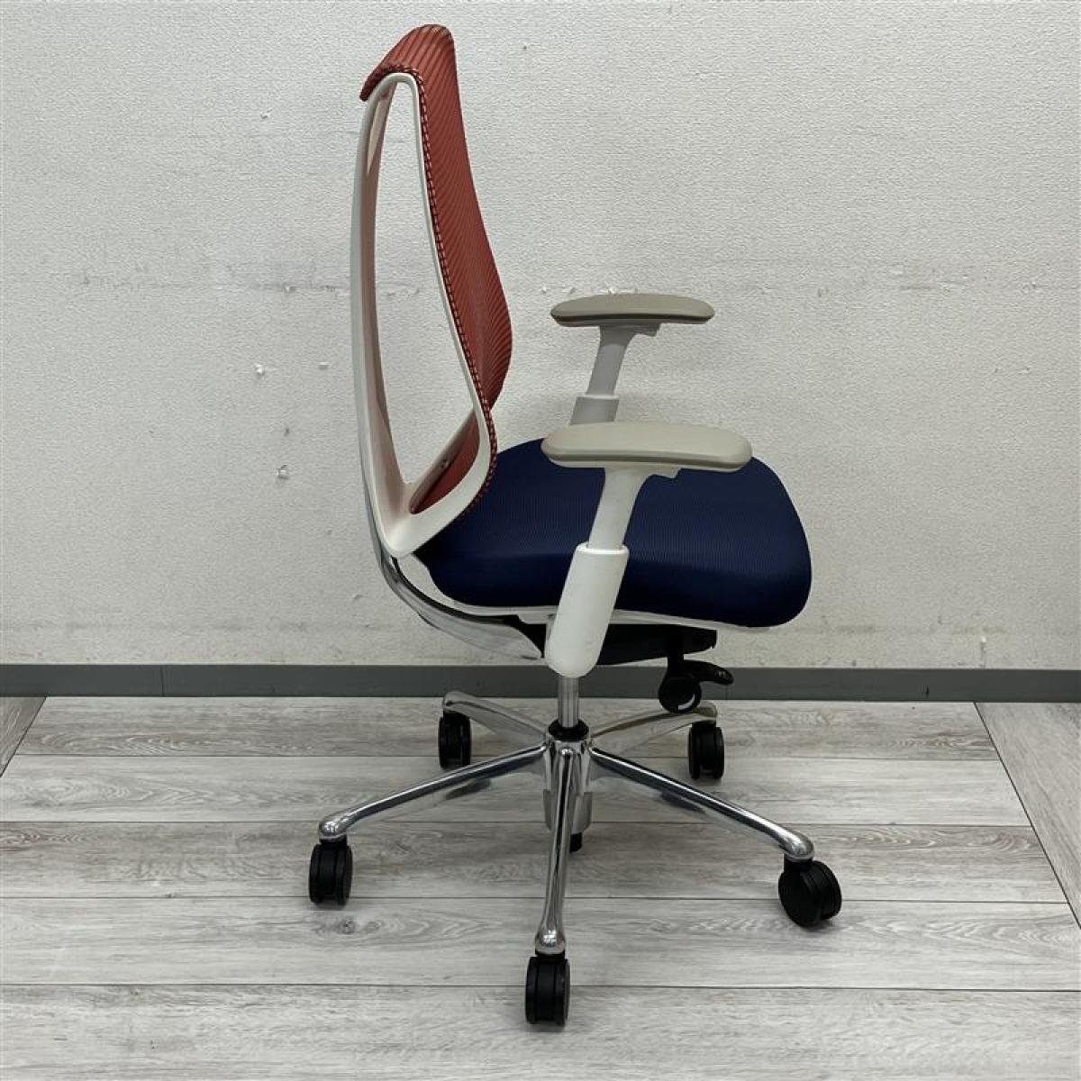 【在庫入替セール】【人間工学から生まれた最先端のワーキングチェア!】■オカムラ サブリナチェア 可動肘付 背:レッド / 座:ダークブルー ■流れるような美しいフォルム!姿勢に心地よくフィット!【K12】