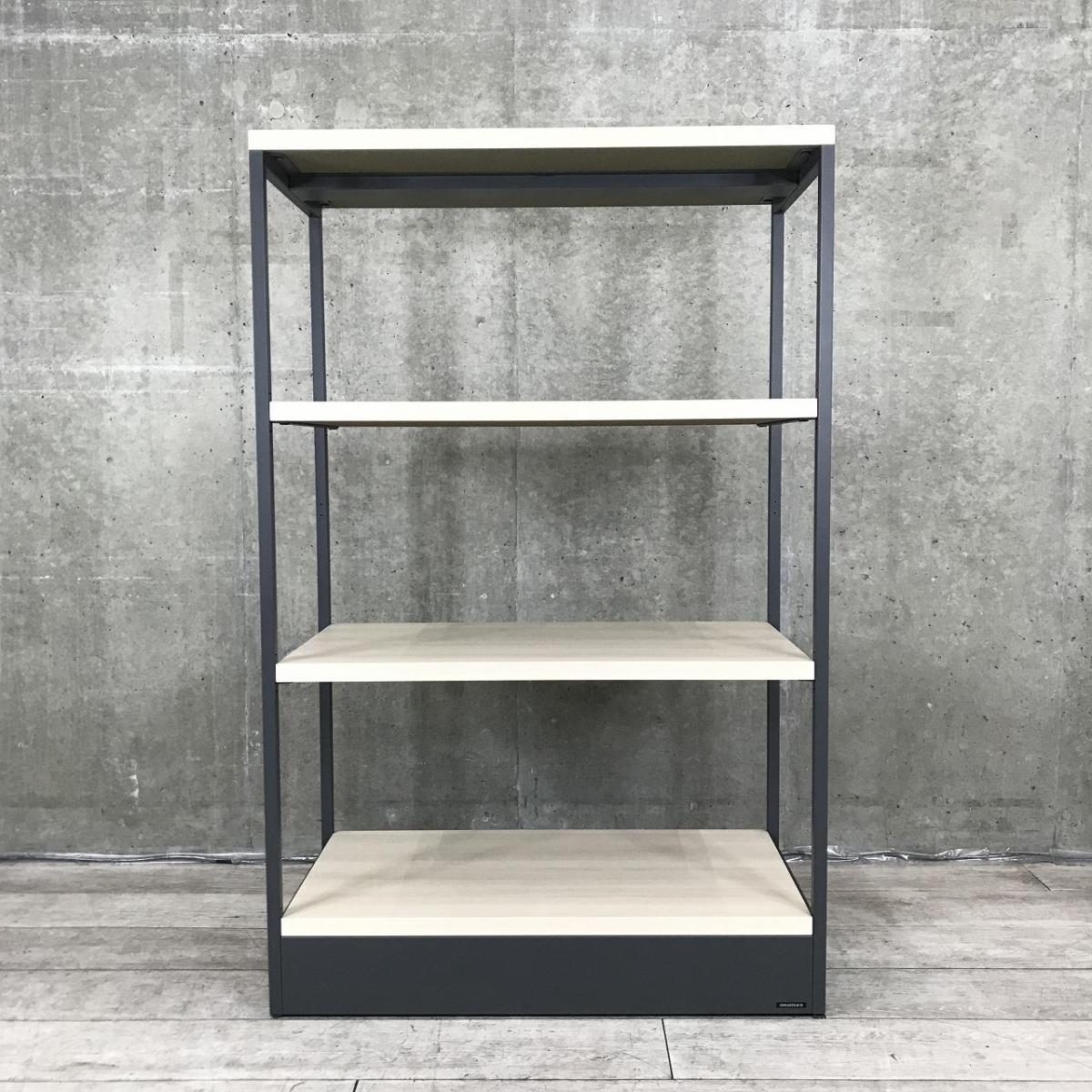【物を置くことはもちろん、空間をさりげなく仕切るパーテーションにもなるシェルフです!】■オカムラ(okamura)製 ライブス(Lives)シェルフ スチールラック W900×D450×H1410㎜ ■フレーム:ブラック 棚:ナチュラル木目調- 茨城南店