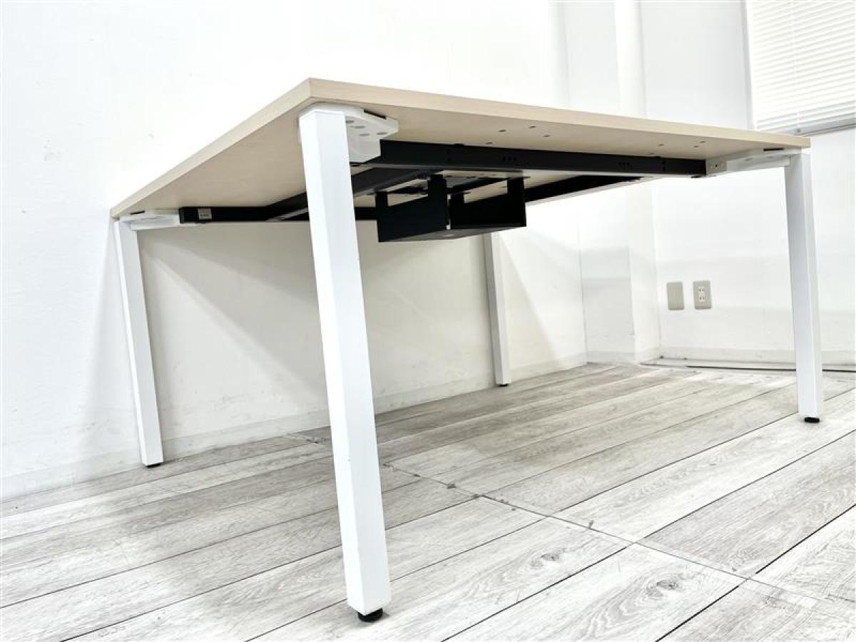 【定価約13万円】【スタイリッシュなミーティングテーブル!ワークデスクとしても使用可能!】 ■コクヨ製 ワークフィット (WORKFIT) ミーティングテーブル ■W1400mm ■配線口 ■木目天板×ホワイト脚- 仙台店