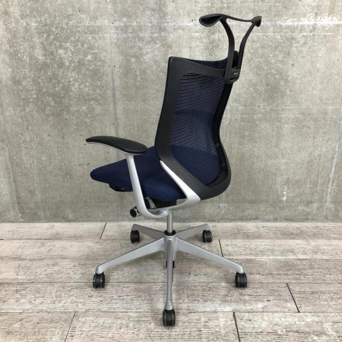 【硬めのメッシュ座面が大人気!国産メッシュチェアの代表格!】■オカムラ(okamura)製 バロン(Baron)チェア ハイバック 肘付き ■背面メッシュ ■固定肘 ■色:ダークブルー ■ハンガー付き- 茨城南店