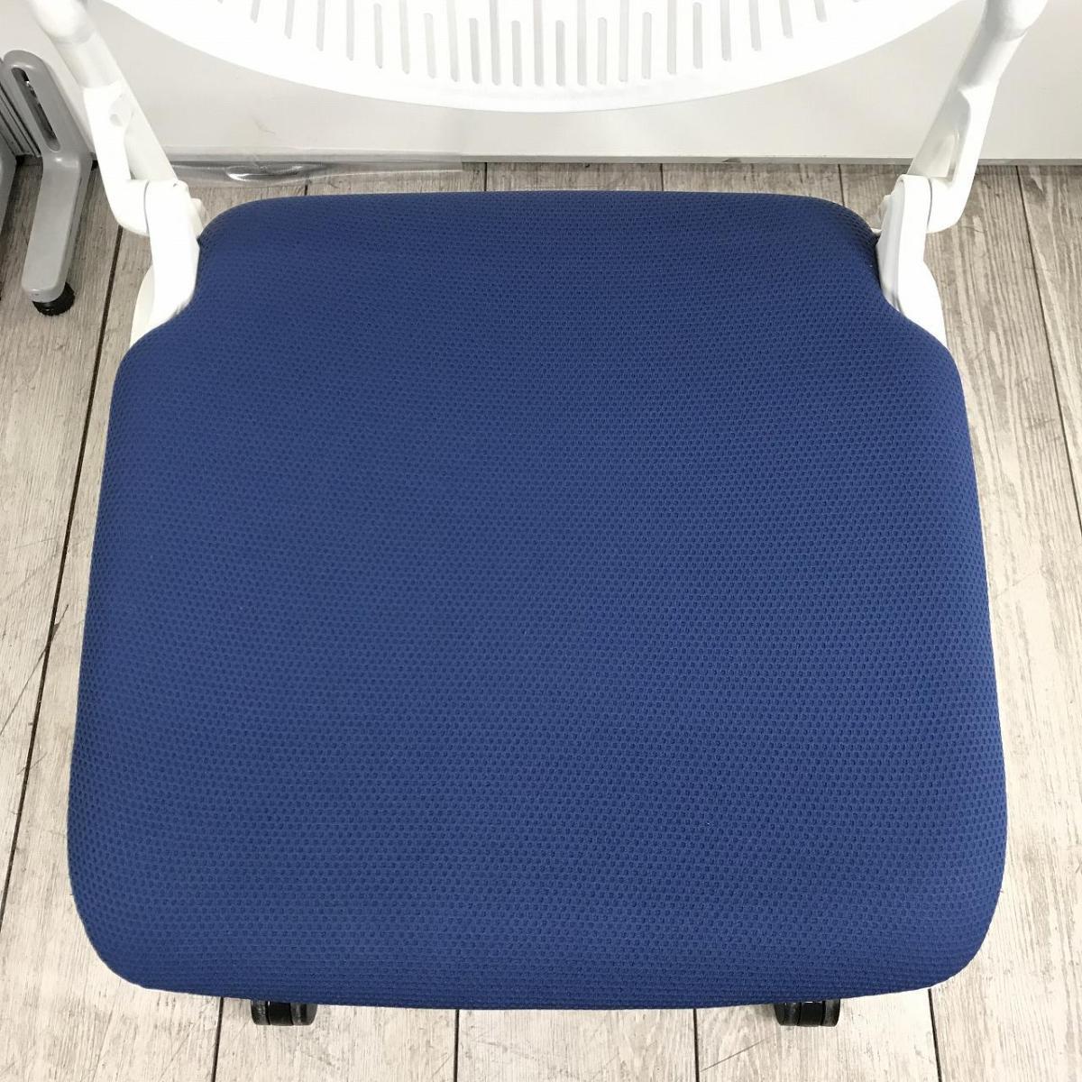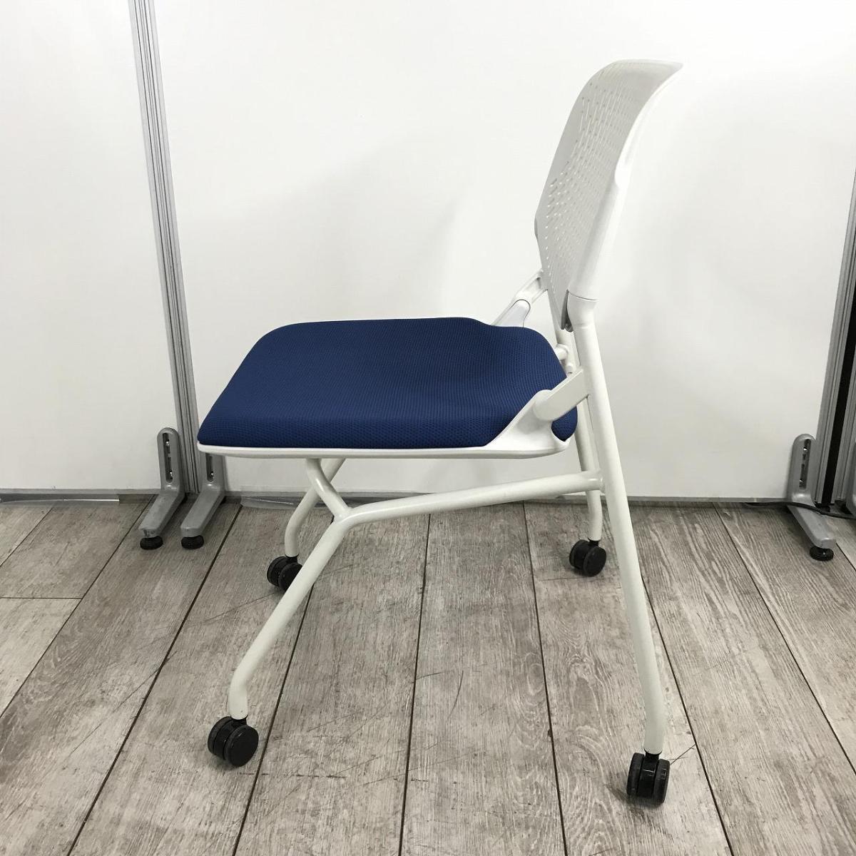 【シンプルなデザインで使いやすいチェア!まとめて入荷しました!】■オカムラ(okamura)製 ルナチェア ネスティングチェア ミーティングチェア ■背ヌードメッシュ ■キャスター付 ■背面ホワイト×座面ブルー【弊社使用欄:A01021501】サーキュラーバリューCO2削減量の算出について
