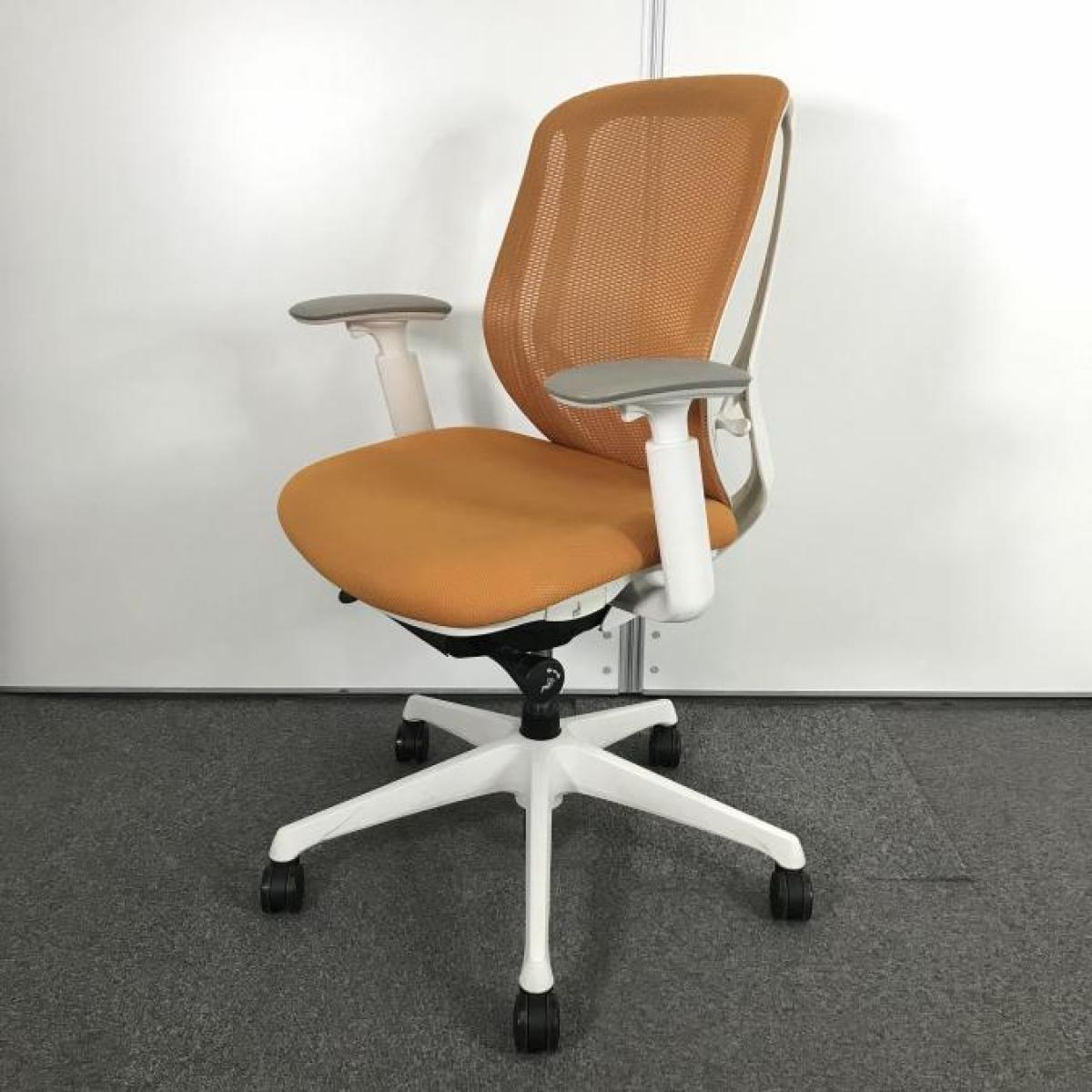 【在庫入れ替え】【三次元曲面が快適にフィット!!前傾チルト機能付の大人気メッシュチェア!】■オカムラ(okamura)製 シルフィー(Sylphy) 肘付ローバック ■メッシュバック ■可動肘 ■オレンジ / フレーム色:ホワイトサーキュラーバリューCO2削減量の算出について