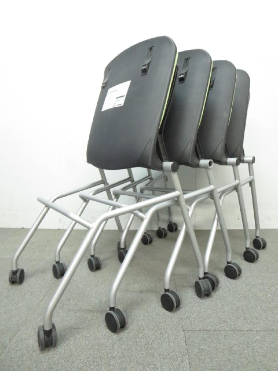 キャスター付き4本脚タイプは、座を跳ね上げることにより平行にネスティングすることができます。
