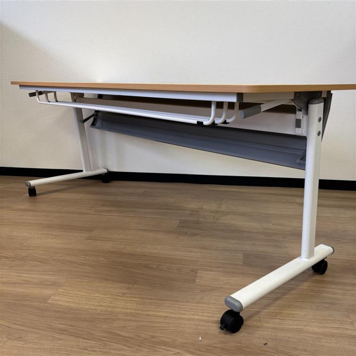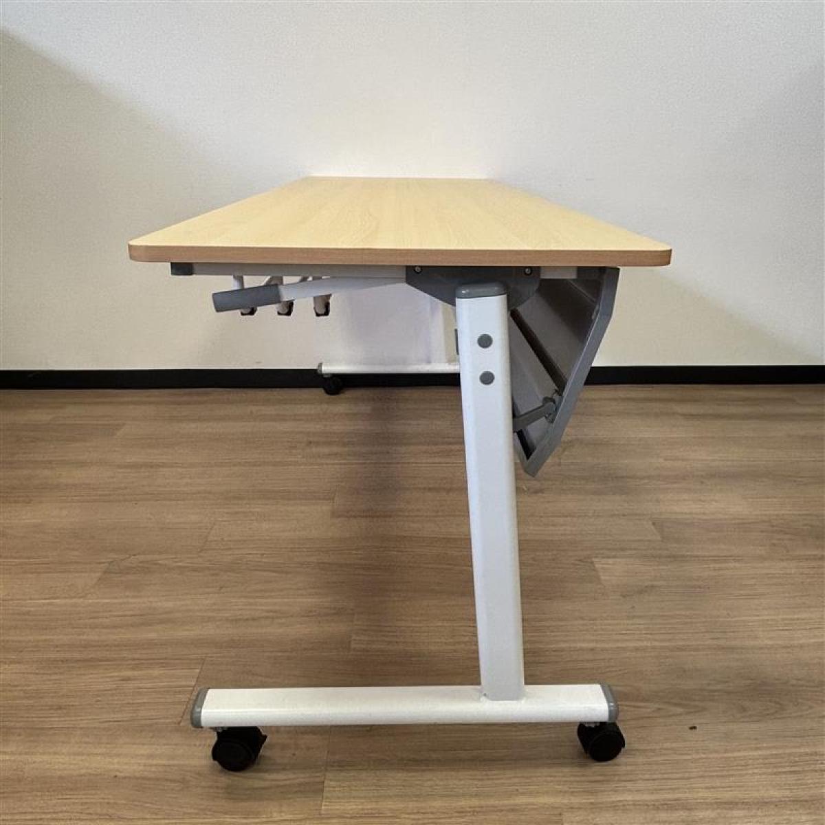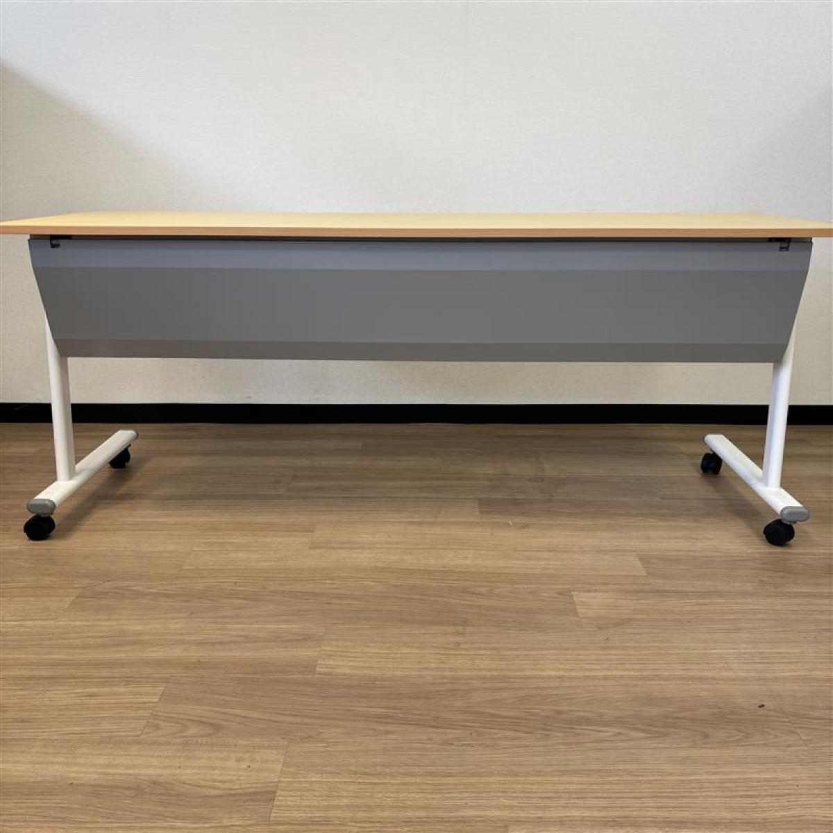 【天板跳ね上げ式で使わないときは省スペースになります!幅1800mmのミーティングテーブル!】■カグクロ サイドスタックテーブル ミーティングテーブル W1800×D600㎜×H720㎜ ■ナチュラル ■キャスター付き 【2503】弊社使用欄【A01007076】- 埼玉本店
