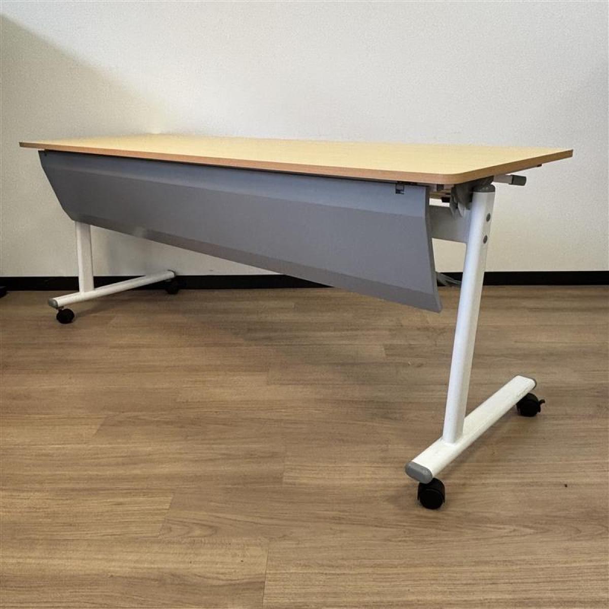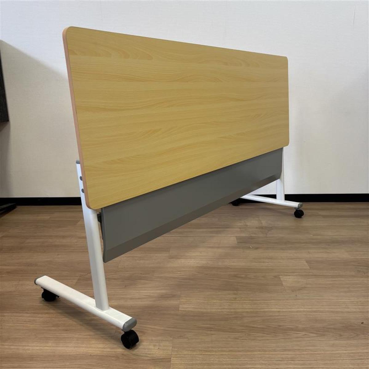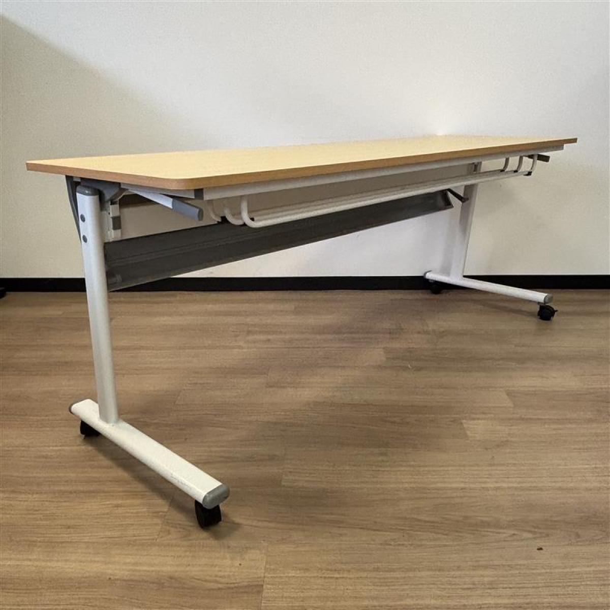【天板跳ね上げ式で使わないときは省スペースになります!幅1800mmのミーティングテーブル!】■カグクロ サイドスタックテーブル ミーティングテーブル W1800×D600㎜×H720㎜ ■ナチュラル ■キャスター付き 【2503】弊社使用欄【A01007076】- 埼玉本店