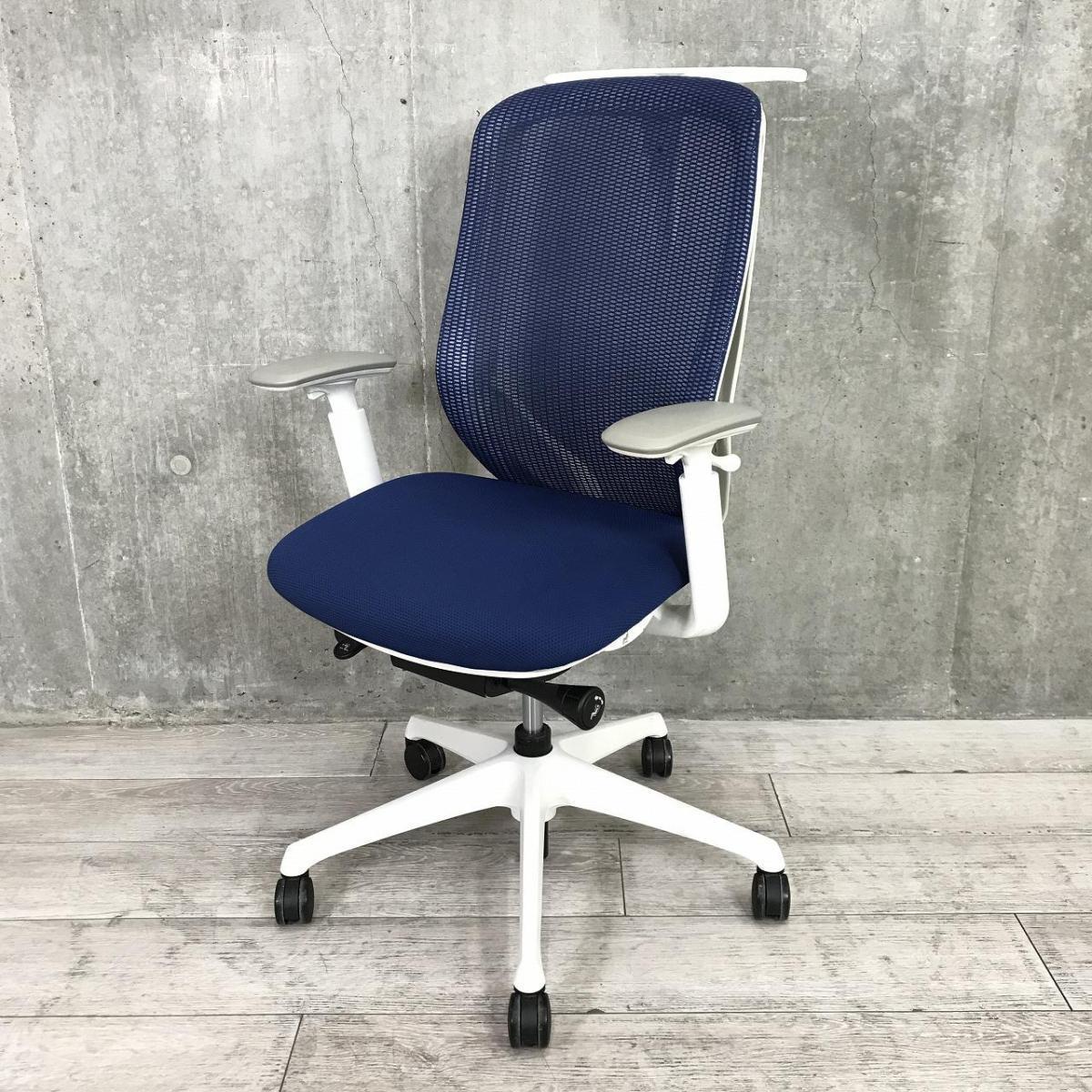 【新品ヘッドレスト交換済み】オカムラ/シルフィー/ブルー/可動肘