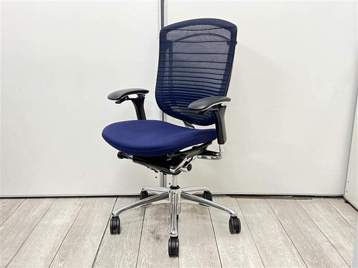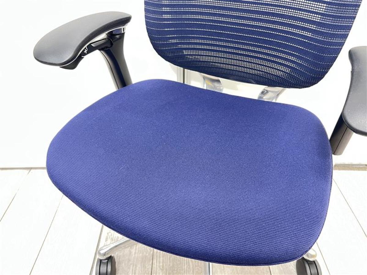 【オカムラ製の最高級チェアが残り1脚限りです!!】オフィスバスターズ 東大阪店 オカムラ製 コンテッサ シリーズ ダークブルー アジャストアーム※可動肘 背/座面メッシュ ランバー 世界で認められた革新的タスクチェア!人間工学に基づいた快適な座り心地を実現! 肘付きハイバックチェア!! 中古 外部倉庫品