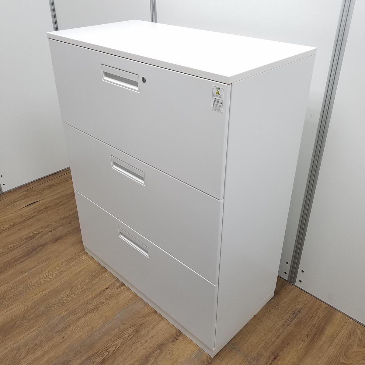 【2020年製】【収納力抜群の3段ラテラル書庫!A4書類が大量に収納可能!】■コクヨ(KOKUYO)製 エディア(EDIA)シリーズ 3段ラテラル ローキャビネット H1130㎜ ■天板・ベース付き ■ホワイト ■シリンダー錠【2511】弊社使用欄【A01044970】