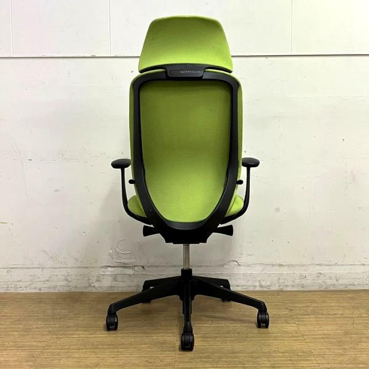 【シミ・汚れがあるため特価】オカムラ シルフィー エクストラハイバック(固定ヘッドレスト付き) 背クッション デザインアーム(固定肘) ライムグリーン×ブラックフレーム 在宅ワーク・テレワーク用におすすめ 前傾機能搭載サーキュラーバリューCO2削減量の算出について