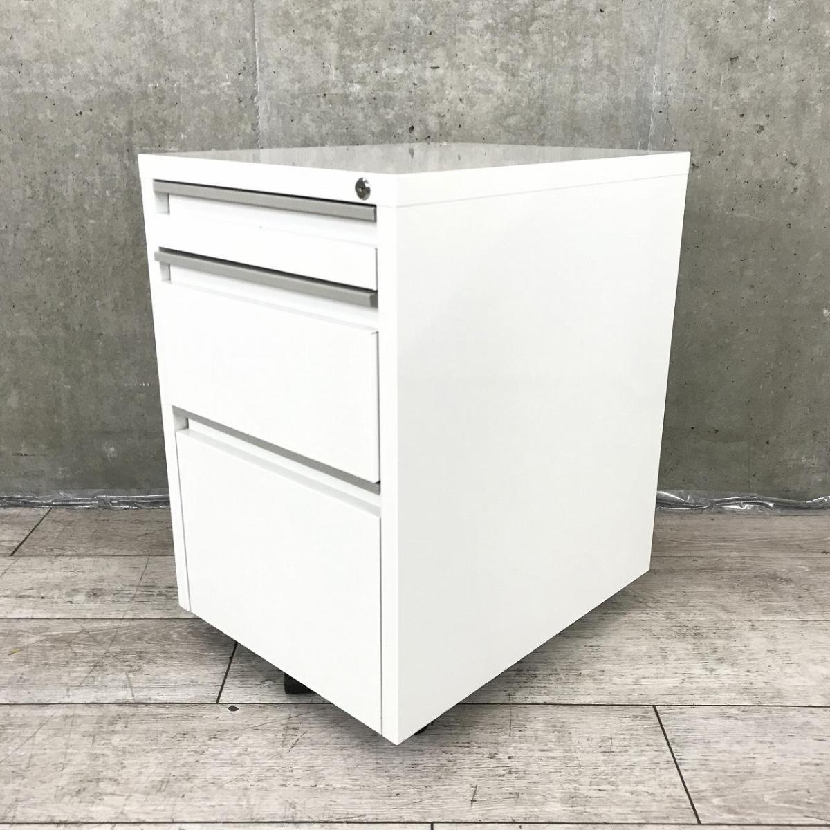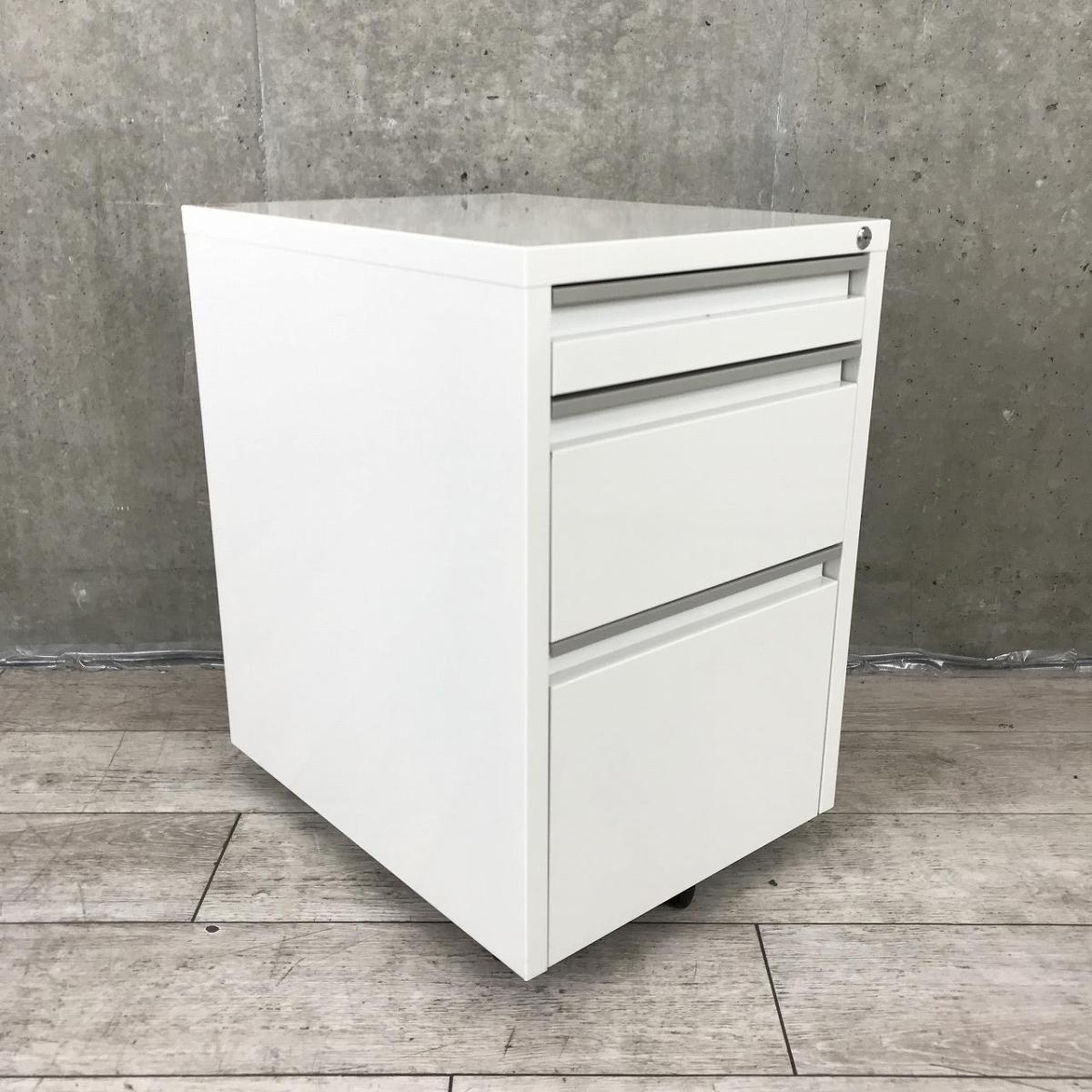 【デスク下の収納・書類管理に!使いやすさ抜群のキャスター付き3段ワゴン】■ナカバヤシ製 3段ワゴン キャスター付 W400×D510×H615㎜ ■ホワイト ■シリンダー錠 ※鍵作成不可【AD】- 在庫数