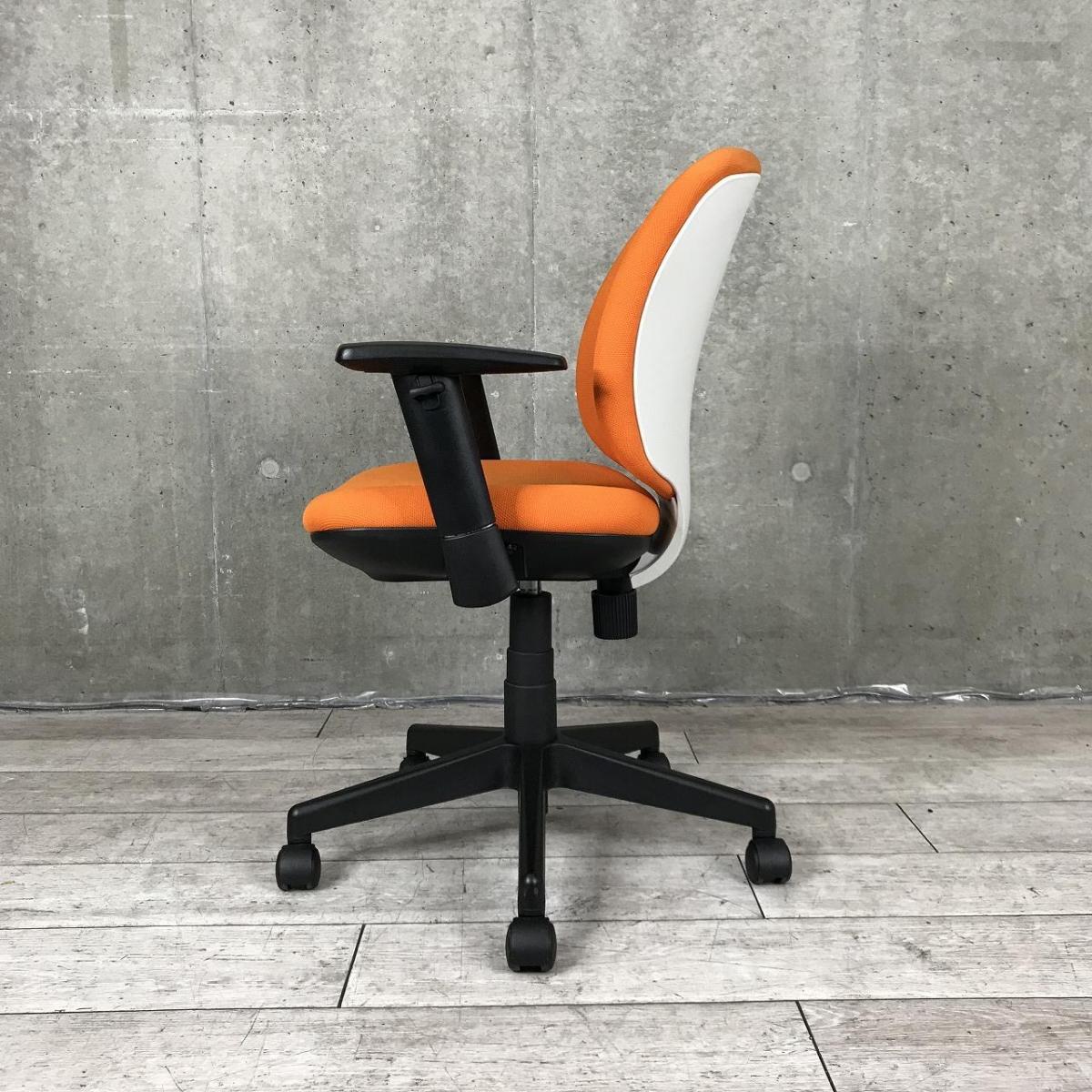【在庫セール品・6脚限定】【T11】■プラス製 (PLUS) プリセア (Presea) 肘付ローバック ■可動肘 ■オレンジ × シェルホワイト / 脚・肘ブラック【シンプルなのに上質・座る人を選ばないフィット感!】