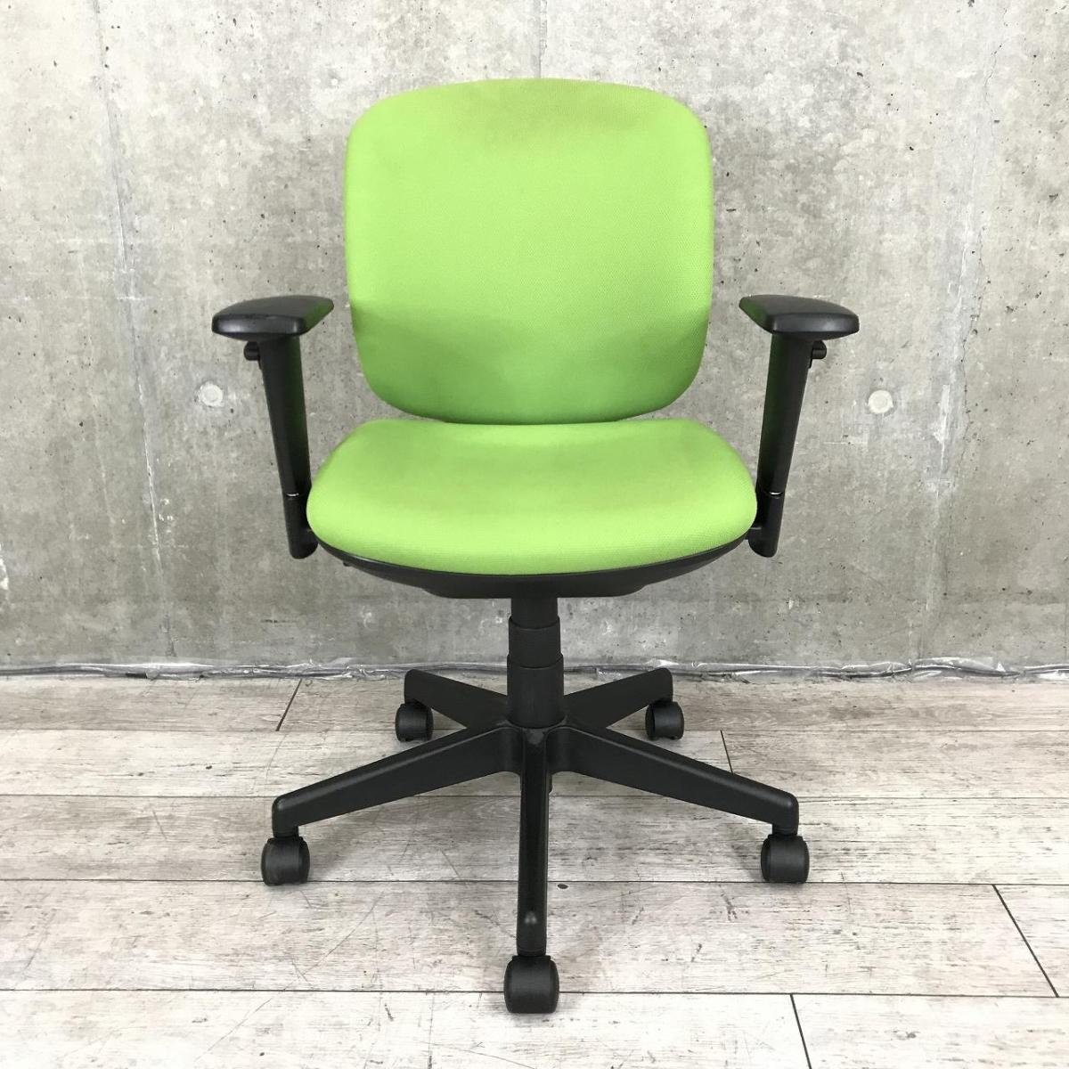 【在庫入替セール品!】【シンプルなのに上質・座る人を選ばないフィット感!】■プラス製 (PLUS) プリセア (Presea) ローバック 肘付き ■可動肘 ■グリーン × シェルホワイト / 脚・肘ブラック- 足立・葛飾店