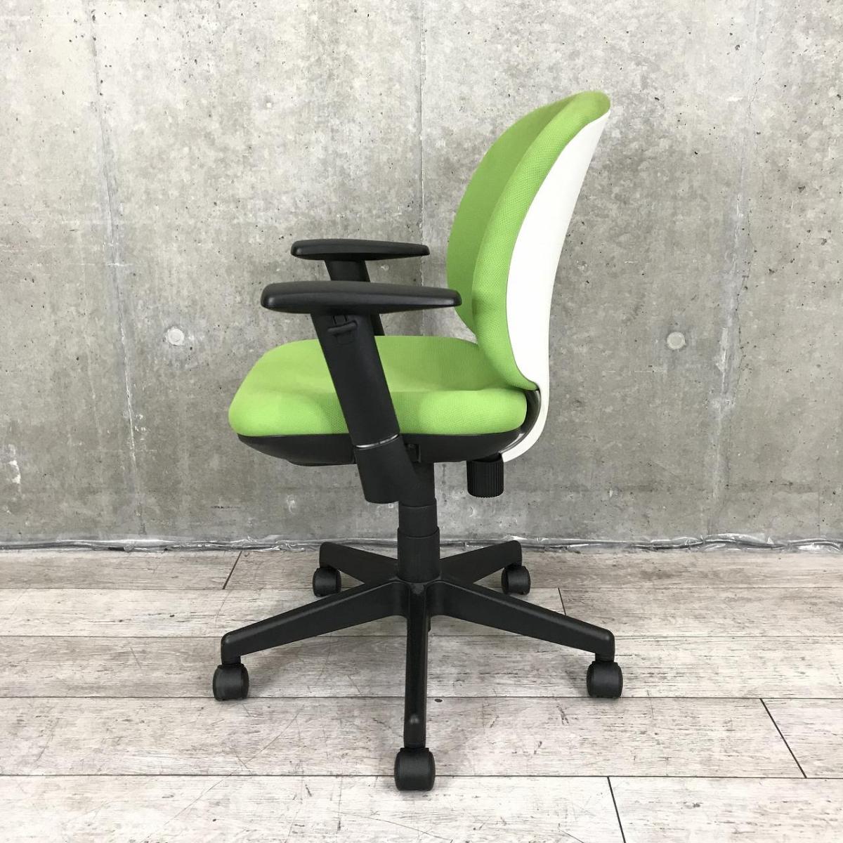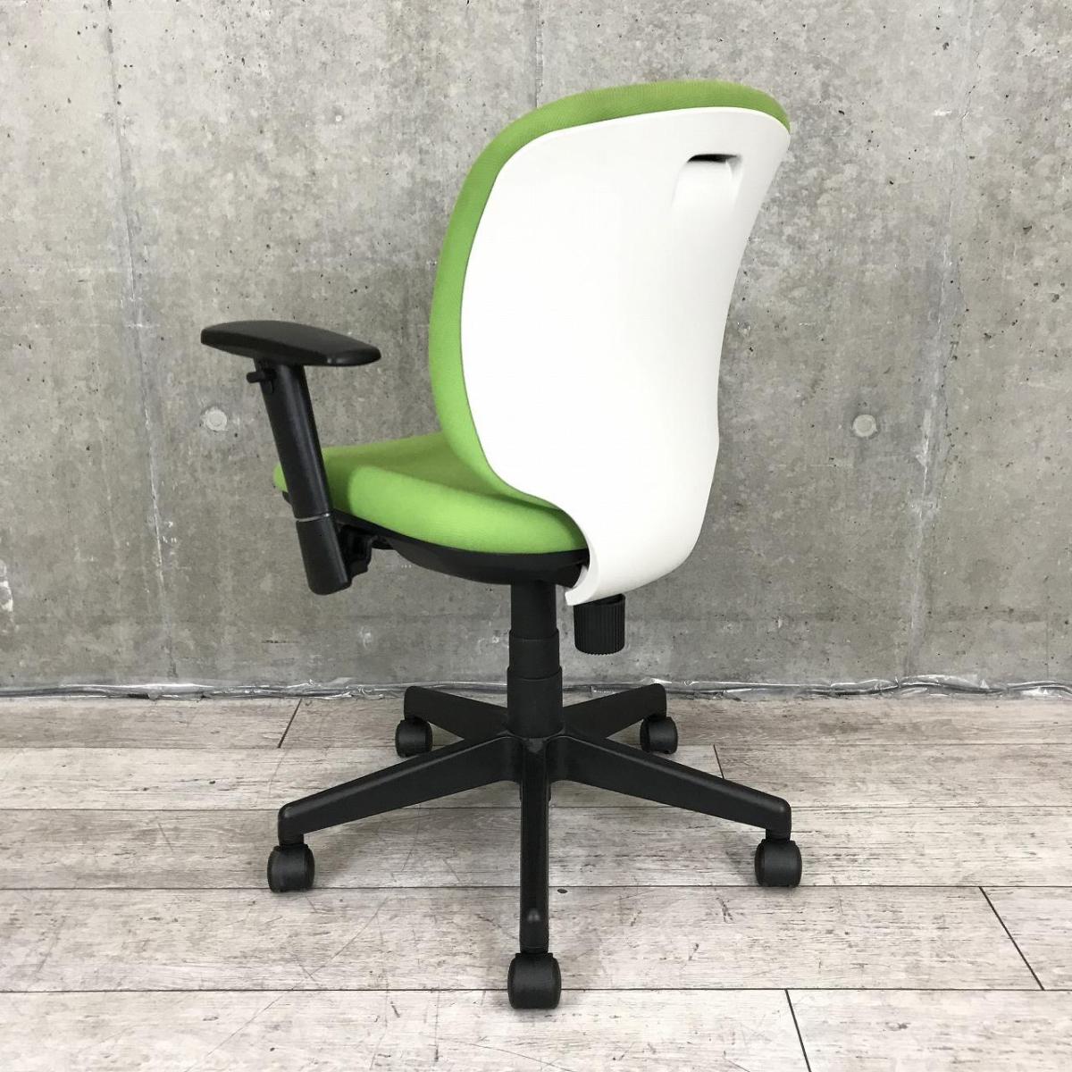 【シンプルなのに上質・座る人を選ばないフィット感!】■プラス製 (PLUS) プリセア (Presea) ローバック 肘付き ■可動肘 ■グリーン × シェルホワイト / 脚・肘ブラック【AD】- 在庫数