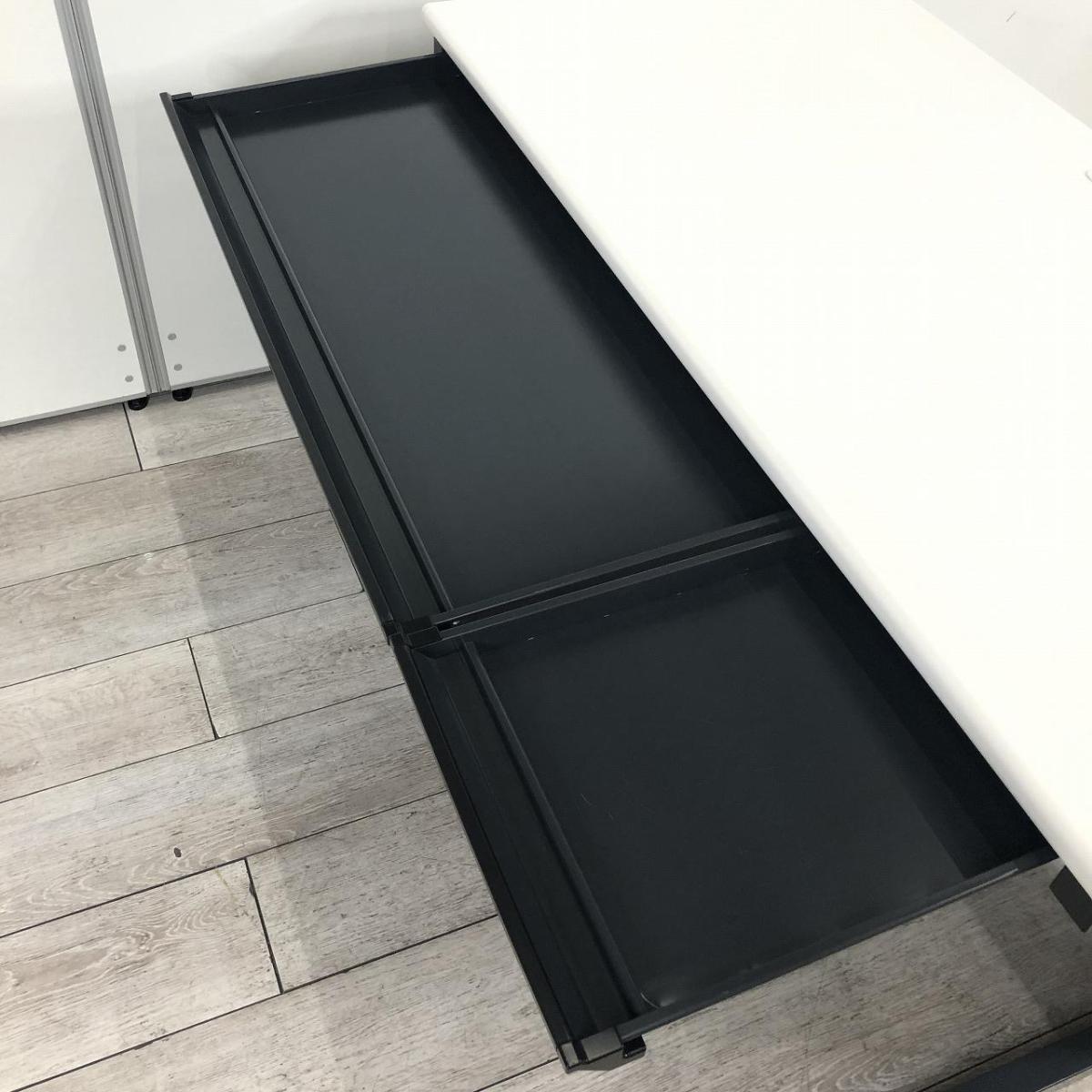 【4台限定】【レア】【ホワイト天板とブラック脚のコントラストがオシャレ!広々使える幅1400㎜!】■プラス(PLUS) フラットラインシリーズ 引き出し付 W1400×D700㎜ ■配線口 ■ホワイト×ブラック在庫がある店舗一覧