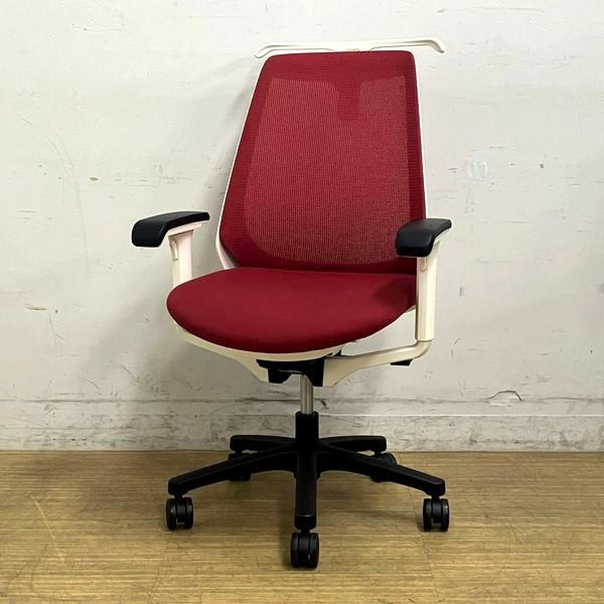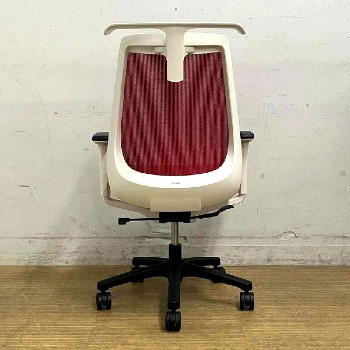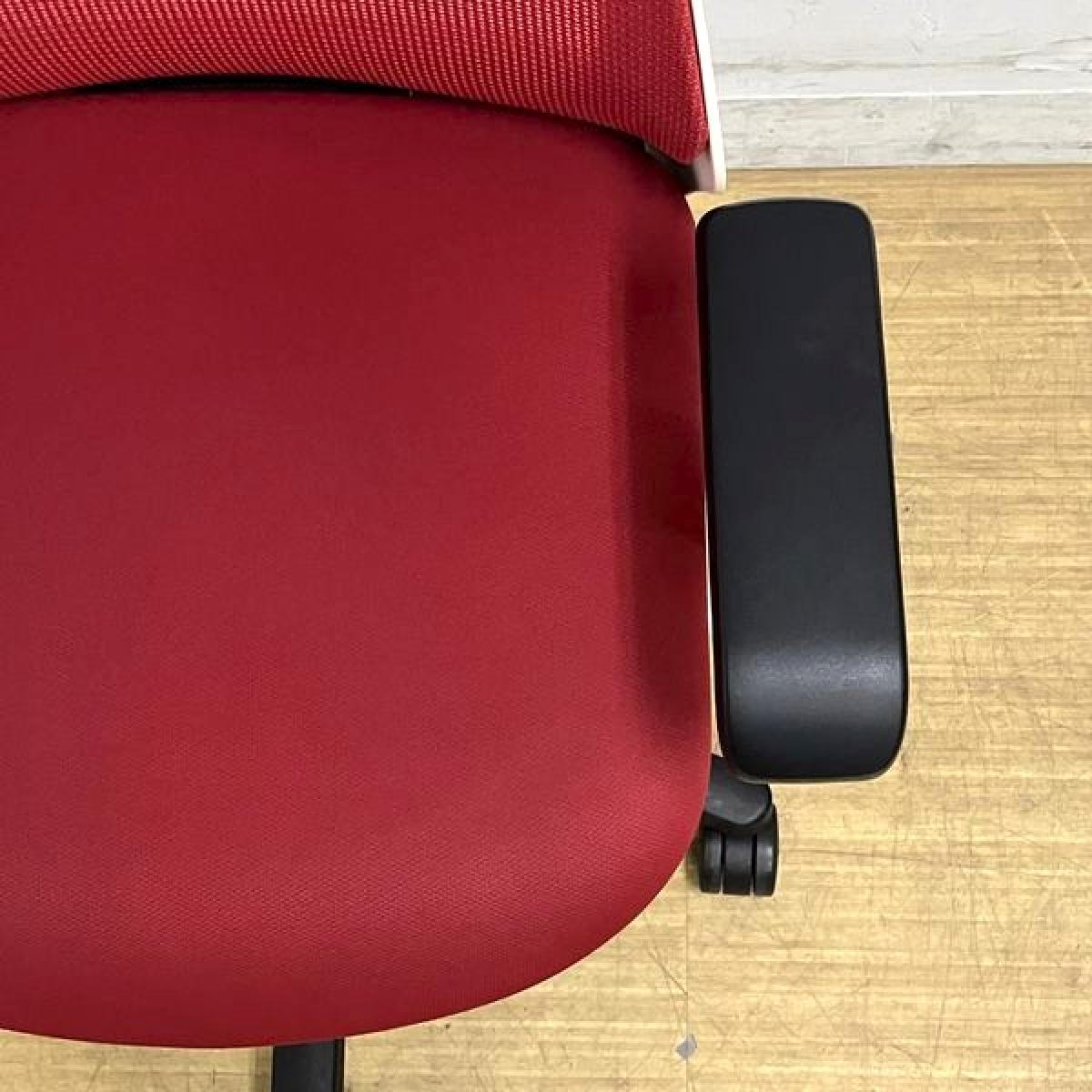【在庫入替セール】イトーキ ノナチェア アジャスタブル肘 軽快なメッシュで爽やかな使い心地 ラズベリーレッド×ホワイトフレーム コンパクト設計で女性にもおすすめ- 名古屋千種店