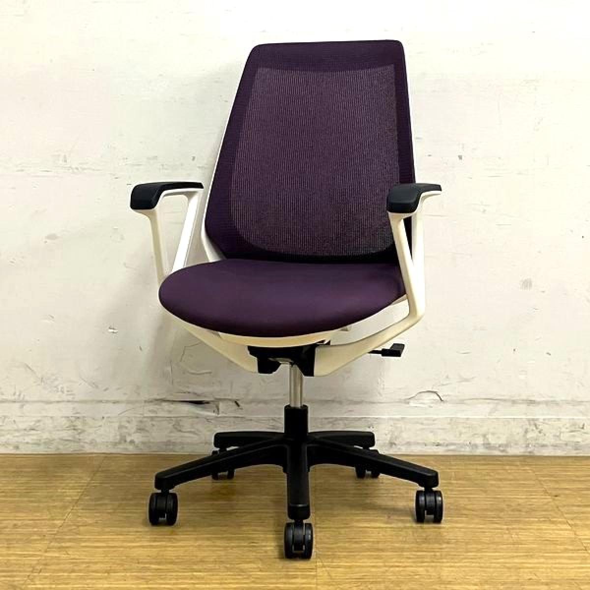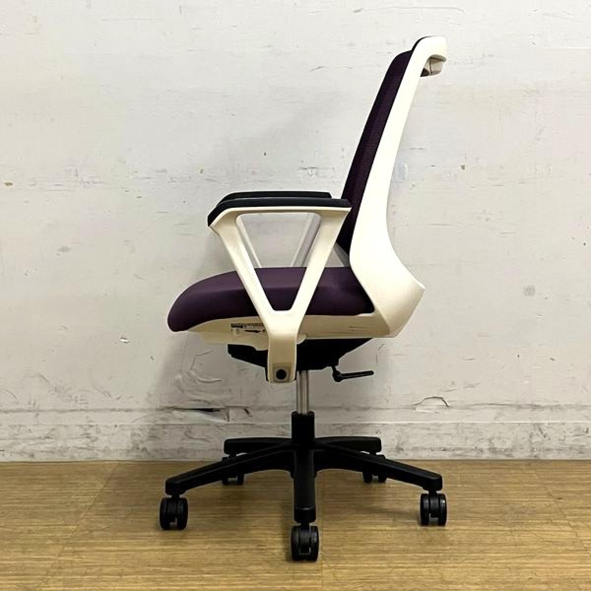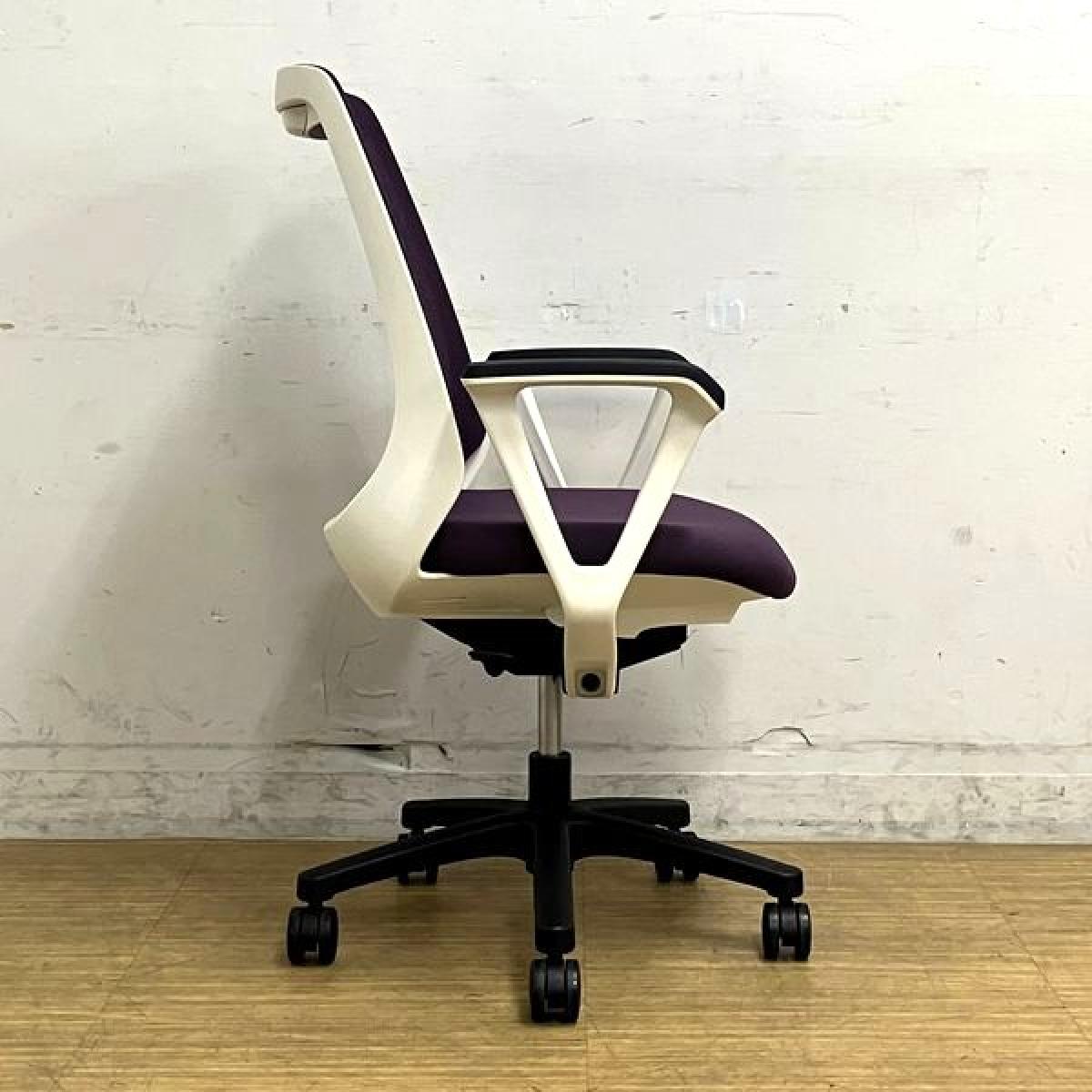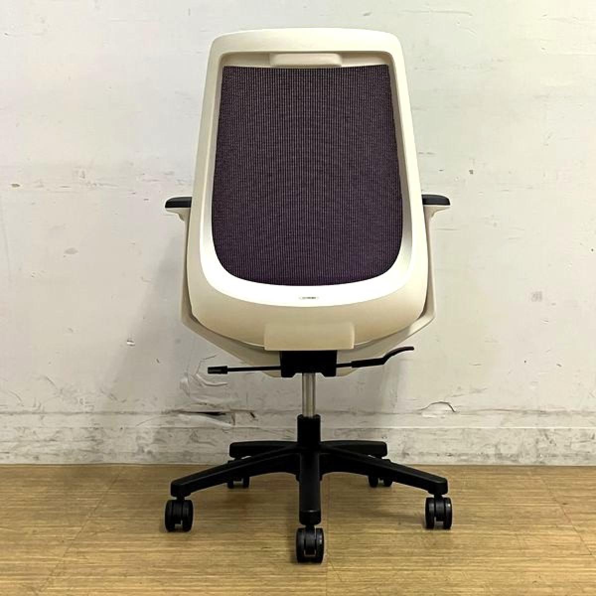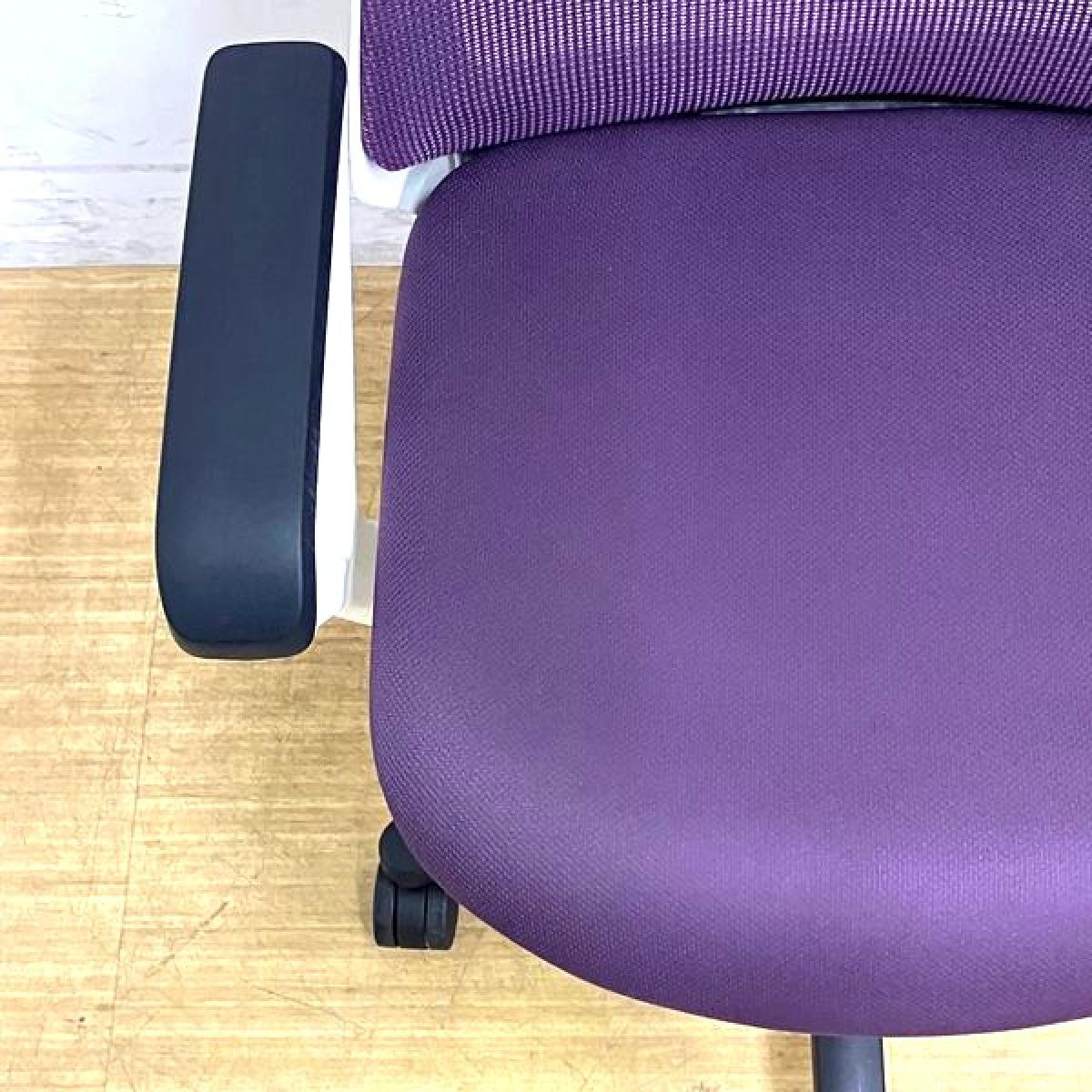 【在庫入替セール】【ロット入荷】イトーキ ノナ プレーンメッシュ ループ肘付き パープル×ホワイトフレーム コンパクトなサイズ感で女性におすすめ- 名古屋千種店
